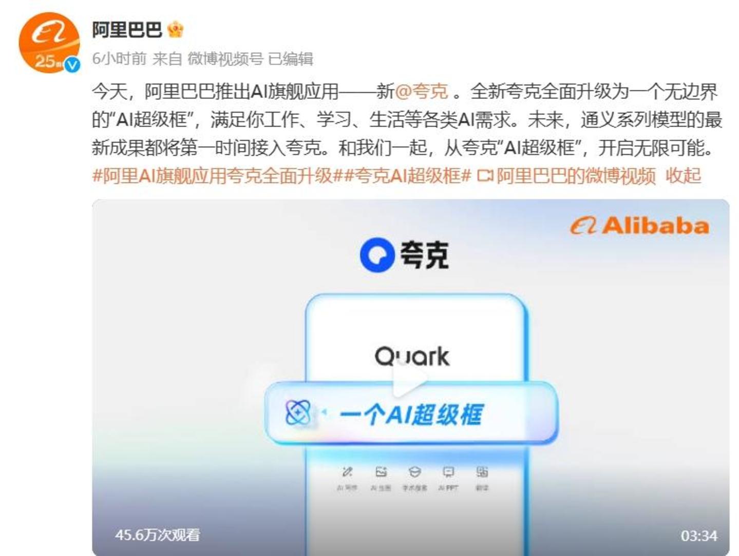 3月13日,阿里巴巴宣布推出AI旗舰应用“新夸克”,向AI搜索战场发起新一轮的冲击。据“趣解商业”了解,“新夸克”基于通义千问领先的推理及多模态大模型,将告别传统搜索,升级为一个All in One的“AI超级框”,满足用户工作、学习、生活的各类AI需求;未来,通义系列模型的最新成果都将第一时间接入夸克。