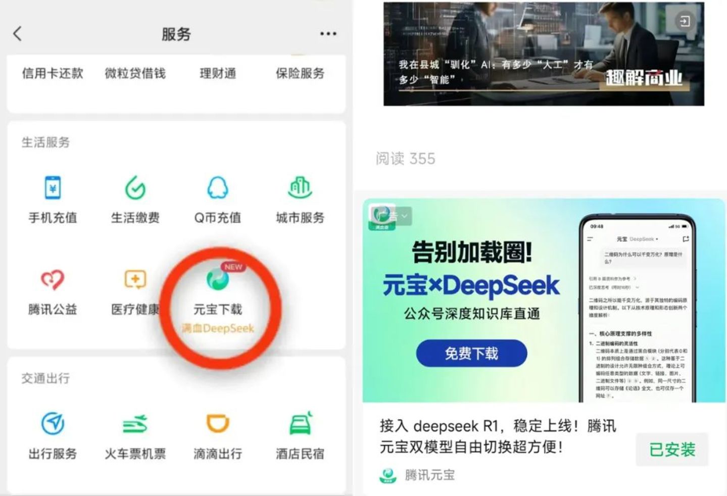 目前,元宝的广告几乎刷遍了腾讯系的所有平台和APP,就连一向对导流倾向克制的微信,都成为了元宝的导流工具,足见腾讯对于元宝的重视程度。