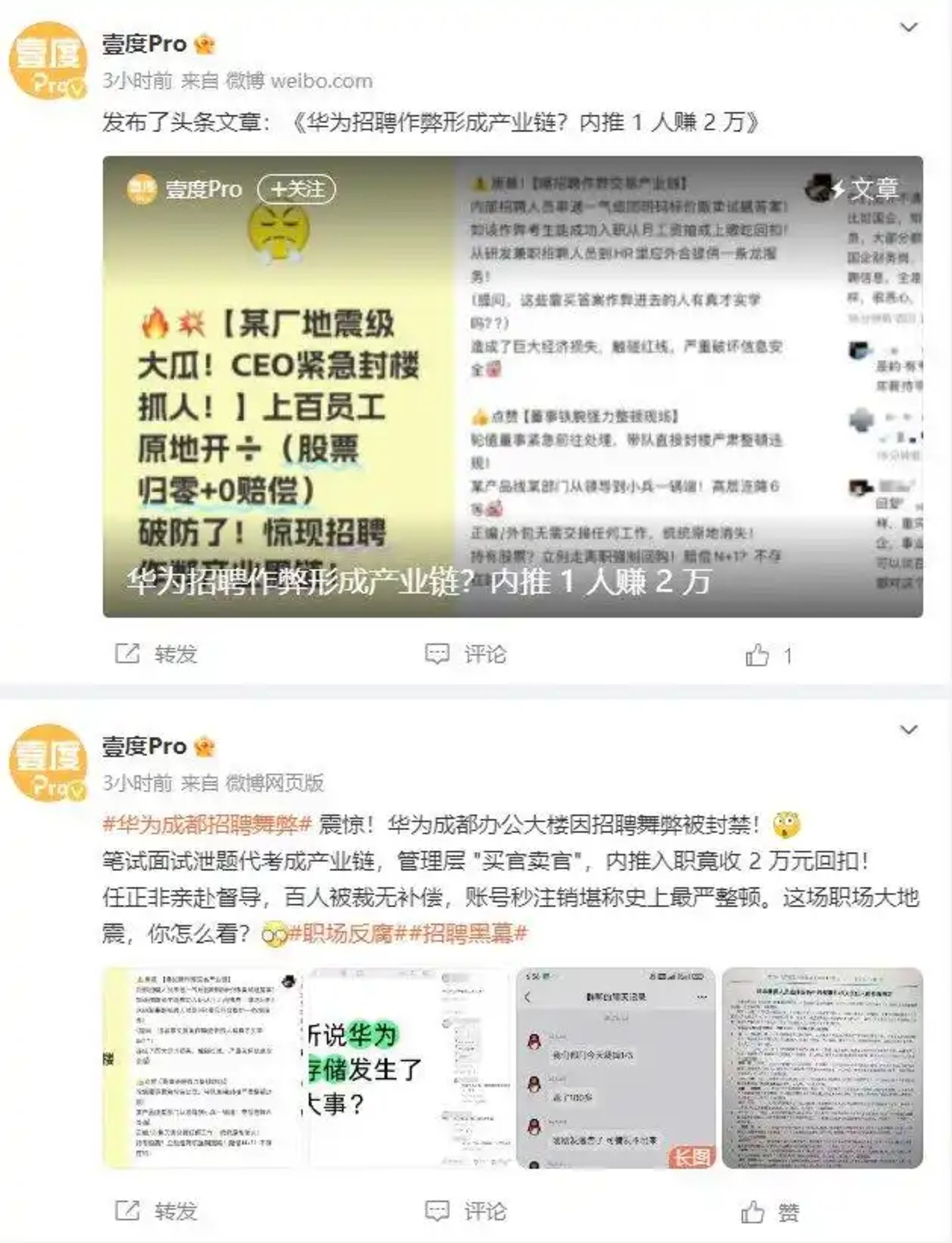 经济观察报等媒体报道,3月10日下午华为公司在内部员工社区平台“心声社区”有一则长达6500字的通报。其中指出,72名华为正式员工及19名非雇员在招聘非雇员过程中存在徇私舞弊行为,多人通过出卖公司信息资产获利。这一通报引发华为内部和社交媒体热议,当天在心声社区热搜榜排名第一。