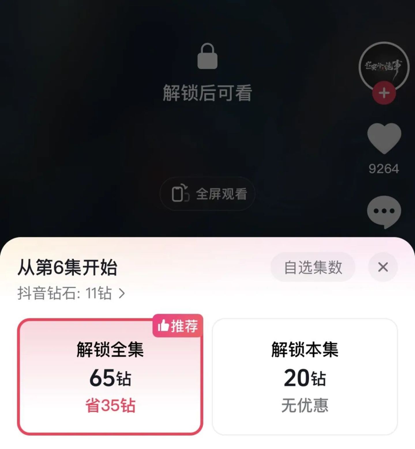 《兴安岭诡事》考虑了付费模式与用户观赏习惯,率先吃上付费蛋糕。在集数与时长上,目前的AI短剧通常在10集以下,时长3-5分钟。据其他媒体报道,《兴安岭诡事》最初设定5集,每集3分钟。为了支撑付费短剧的体量,5集被拆成了11集,每集平均1-2分钟。在抖音原生端上线后,前5集免费可看,若解锁后6集则需付费65抖音钻石。为了吸引用户付费,抖音还推出限时优惠半价,最终价格仅约5元人民币。