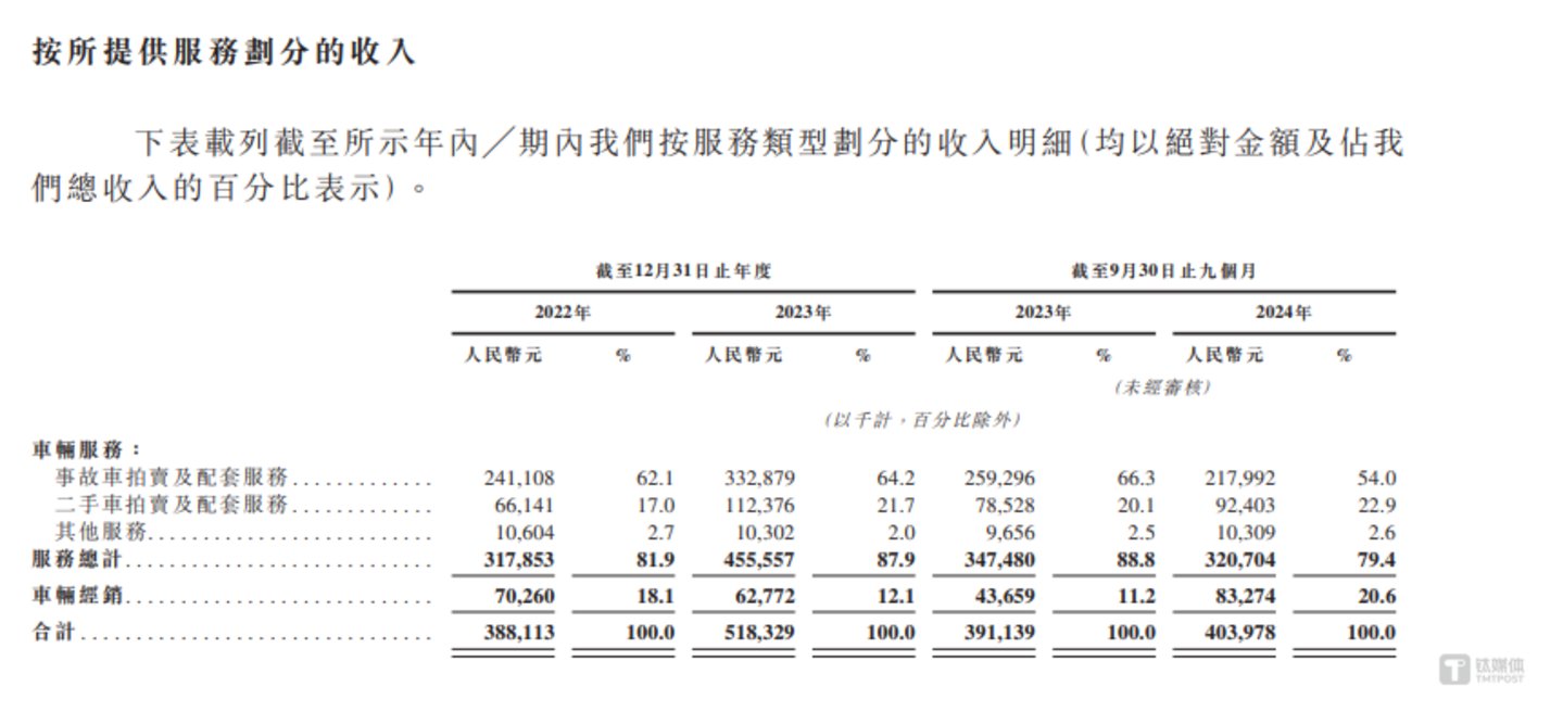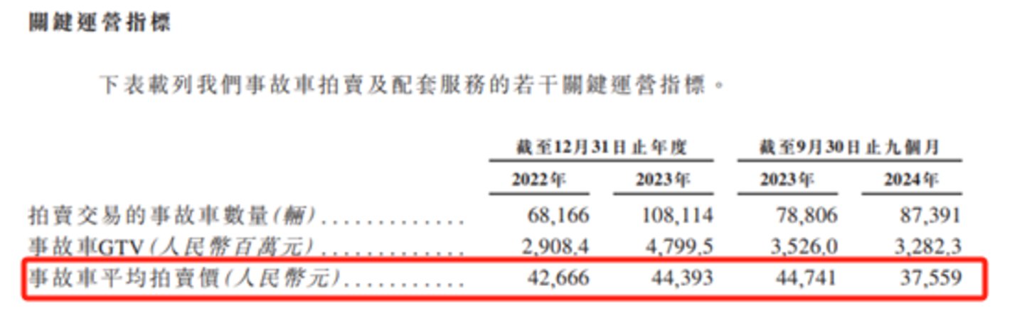 其次,博车网事故车的销售单价也在大幅下滑。报告期内,博车网事故车的评价拍卖价分别为42666元、44393元、37559元,其中2024年前三季度的平均拍卖价同比下滑了16.5%,而这也导致了博车网2024年前三季度的毛利润同比下滑了4.5%。