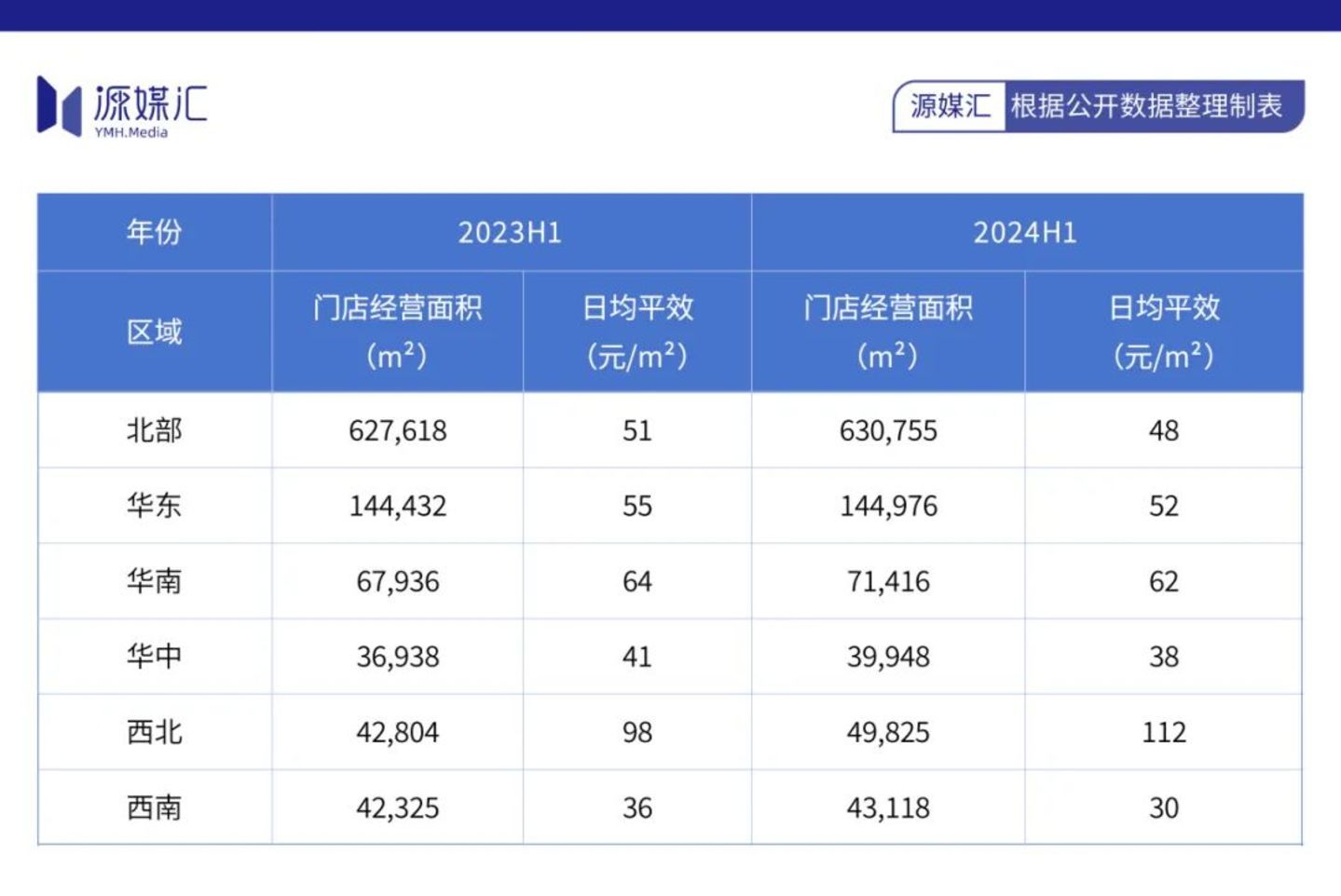 2024年上半年,国大药房的客单价降至96元,同比减少3元。布局最广的北部区域直营门店,日均平效由51元/平方米降至48元/平方米,华东和华南地区分别下降至52元/平方米、62元/平方米。尽管拥有30余个物流中心和全国冷链网络,但单店日均销售额不足2000元,低于行业平均,门店经营效率有待提升。