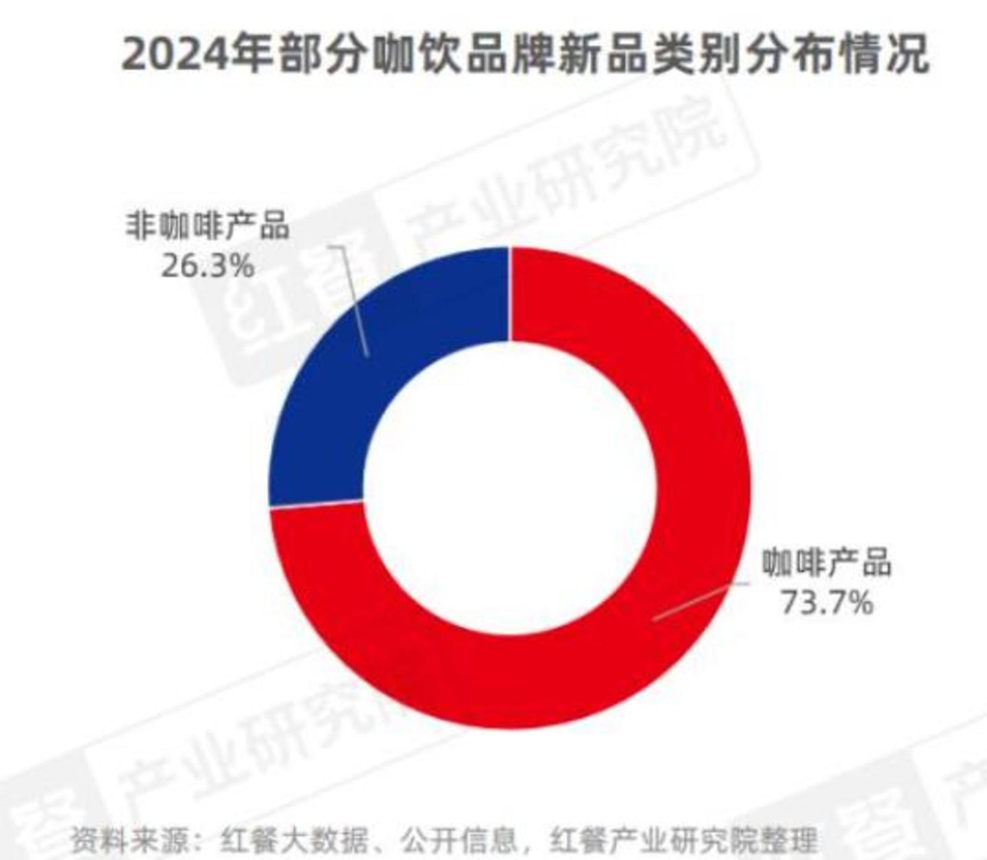 据红餐产业研究院不完全统计,2024年咖饮监测样本品牌推出的新品中,非咖啡饮品数量占比高达26.3%。星巴克、Peet's Coffee、Tims天好咖啡、蓝瓶咖啡等品牌则推出了“低咖啡因”咖啡产品。