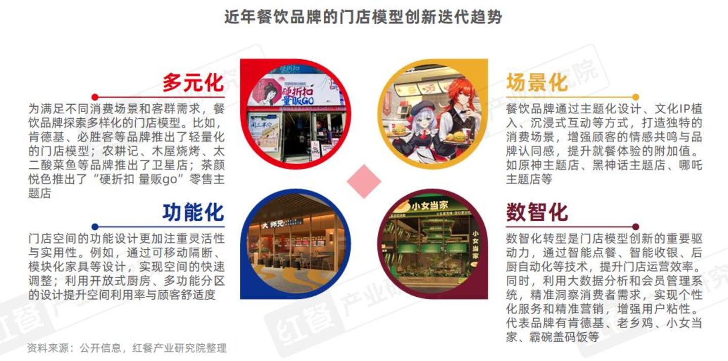 在门店模型迭代方面,为适应多样化的消费场景与需求,小型店、卫星店、外卖店、快闪店、店中店、联名主题店、品牌旗舰店、无人智慧餐厅等创新门店模型不断涌现,成为品牌抢占市场、提升核心竞争力的关键举措。
