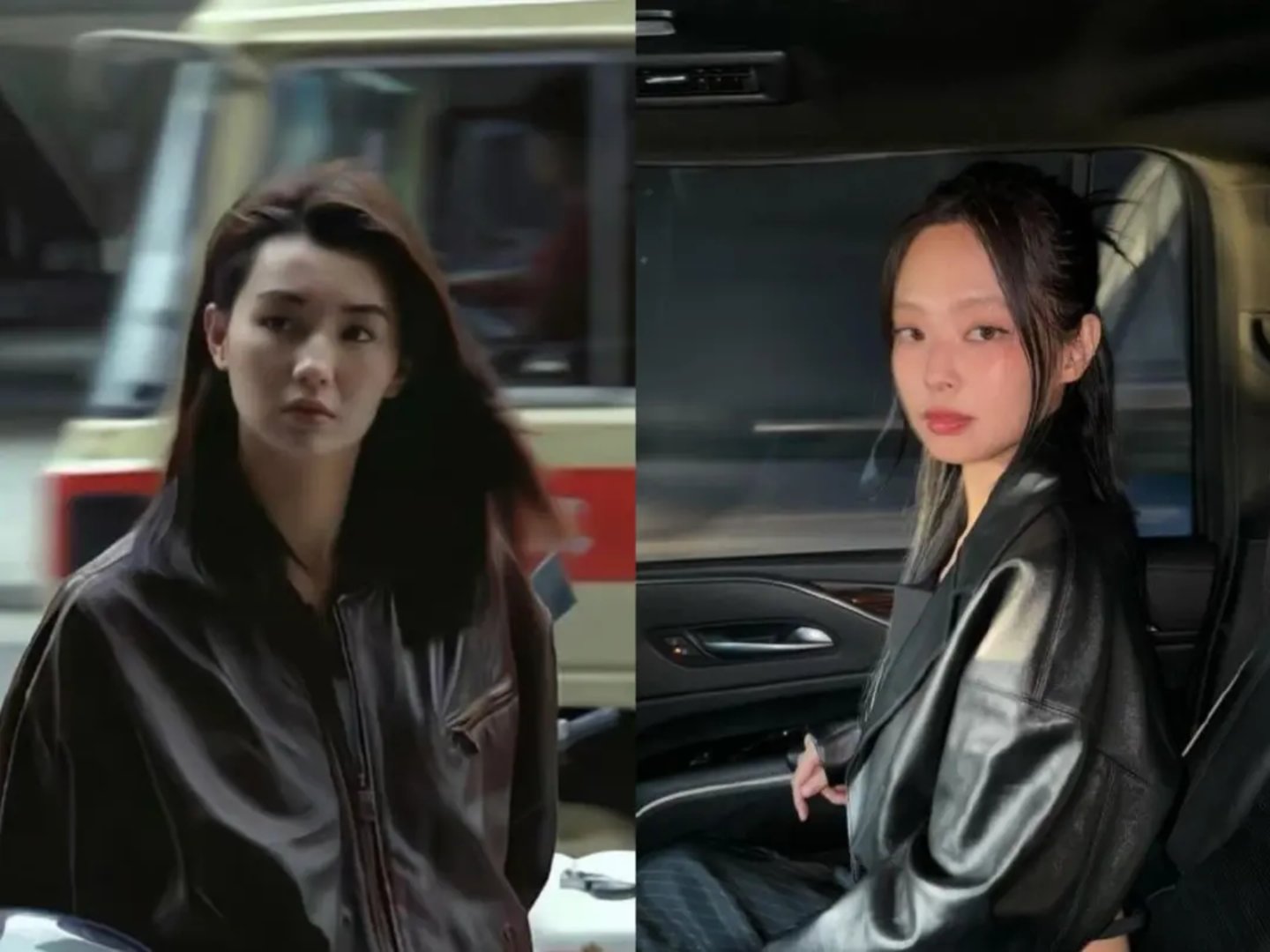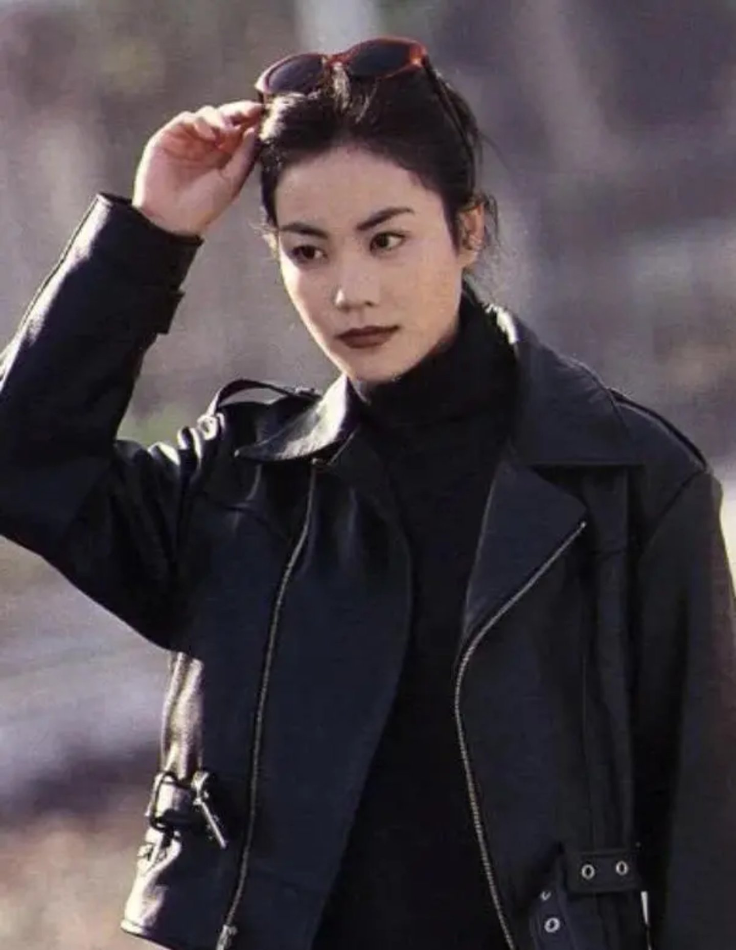 (上世纪90年代,王菲在电影《原振侠》穿着皮衣)