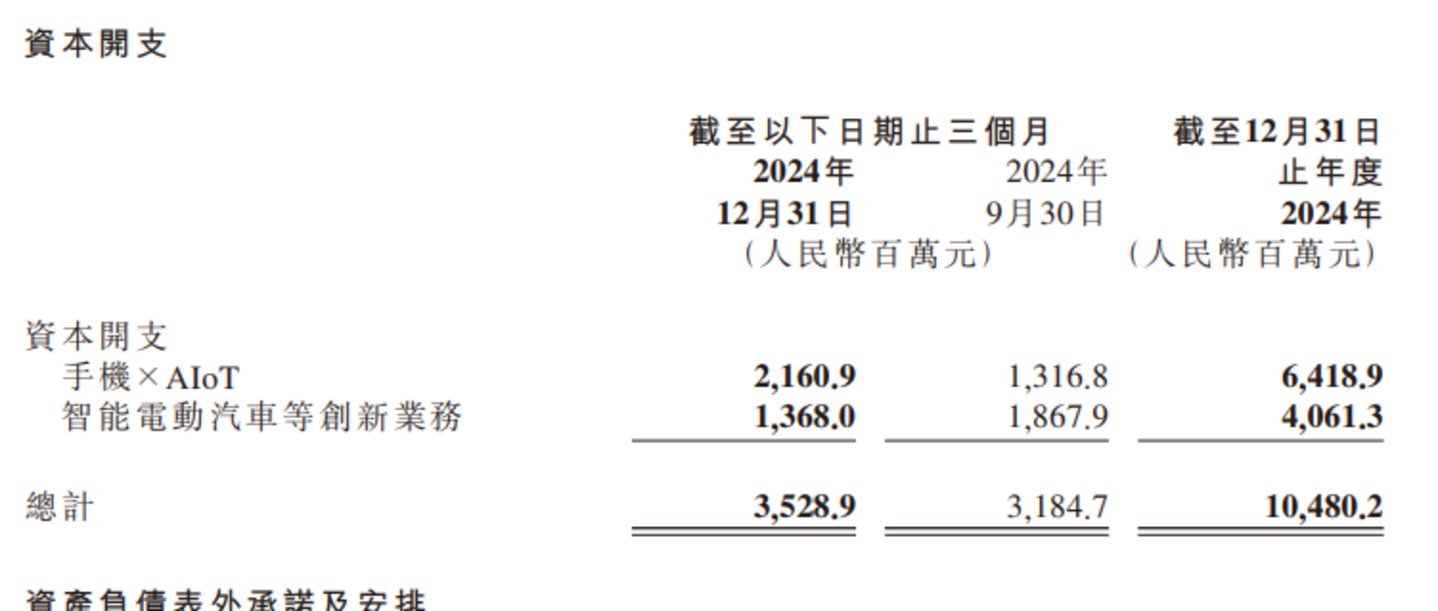 四季度,小米资本开支总计为35.28亿元。去年同期,小米的资本开支为27.27亿元。