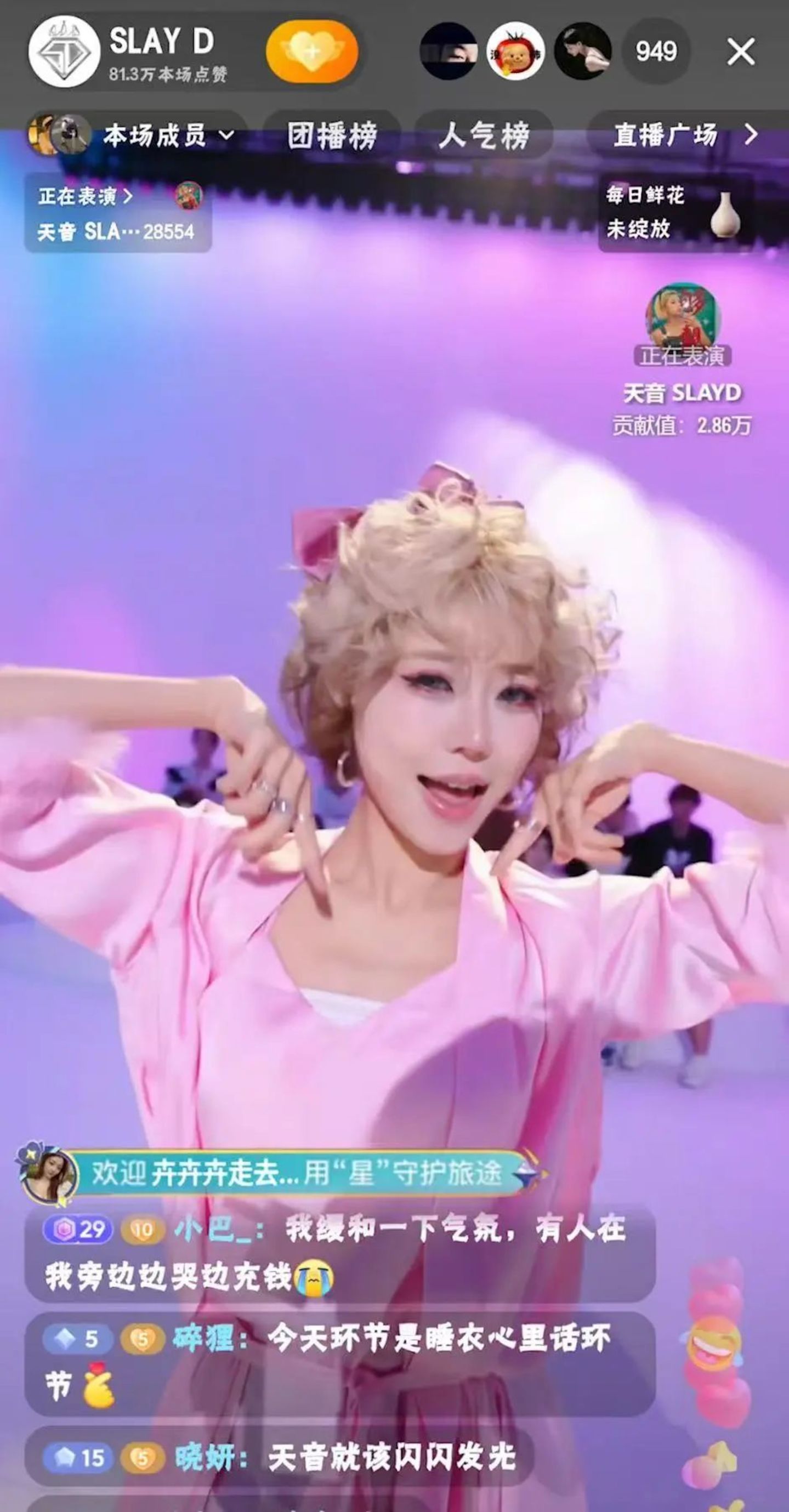 值得一提的是,日常的直播中,SLAY D的成员通常更偏向于专业舞台展示,用与镜头的互动代替言语表达,私下也没有做单向个人与单个粉丝的互动。芦林表示,团员们大多还很年轻,在沟通与互动的尺度和边界上,可能尚未足够成熟。这种运营思路相较于直播工会,更接近偶像经纪公司。