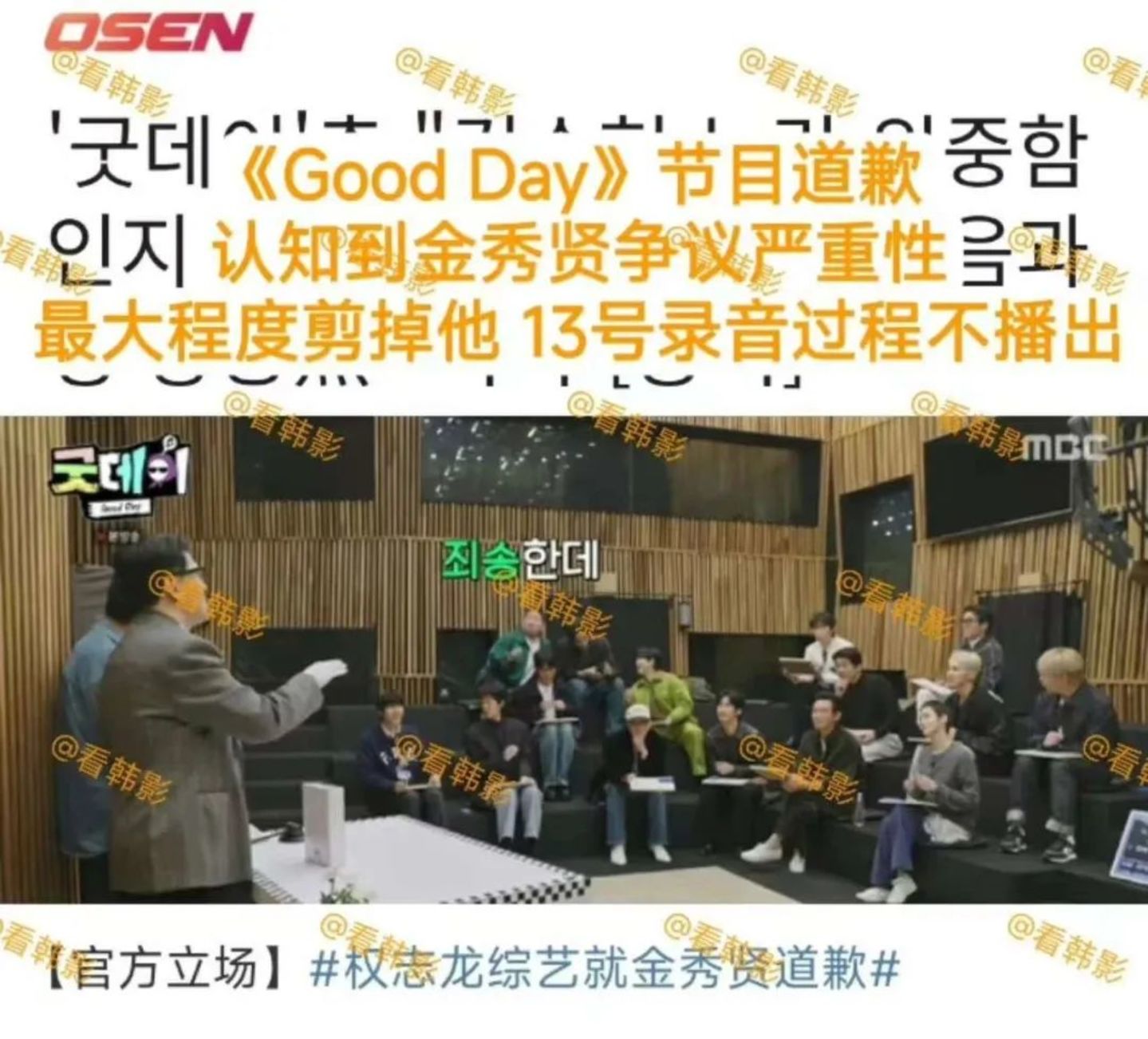 “横竖研究所”持续爆料两天后,金秀贤仍出现在新剧《山寨人生》的拍摄现场,工作人员称其休息时“失魂落魄”,但可以正常参与演出;次日权志龙的综艺《Good Day》,金秀贤也没有缺席,节目组称其“强行出现参与录制,后期会将其画面最小化”,但并未宣布其下车消息。