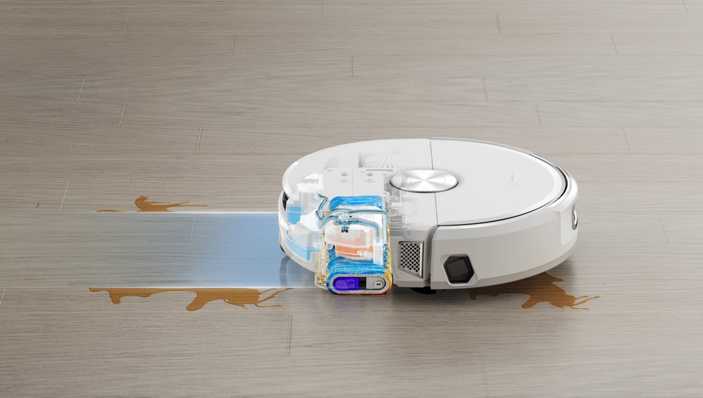 近两年,滚动结构拖布被多个扫地机厂商应用,在提供了足够的压强之外,自带的活水实时清洁系统,可以实现“边拖变洗”、“实时清洁”的体验,在去除顽渍的能力上更强,也解决了双旋/震动式拖布存在的“以脏拖脏”的问题。