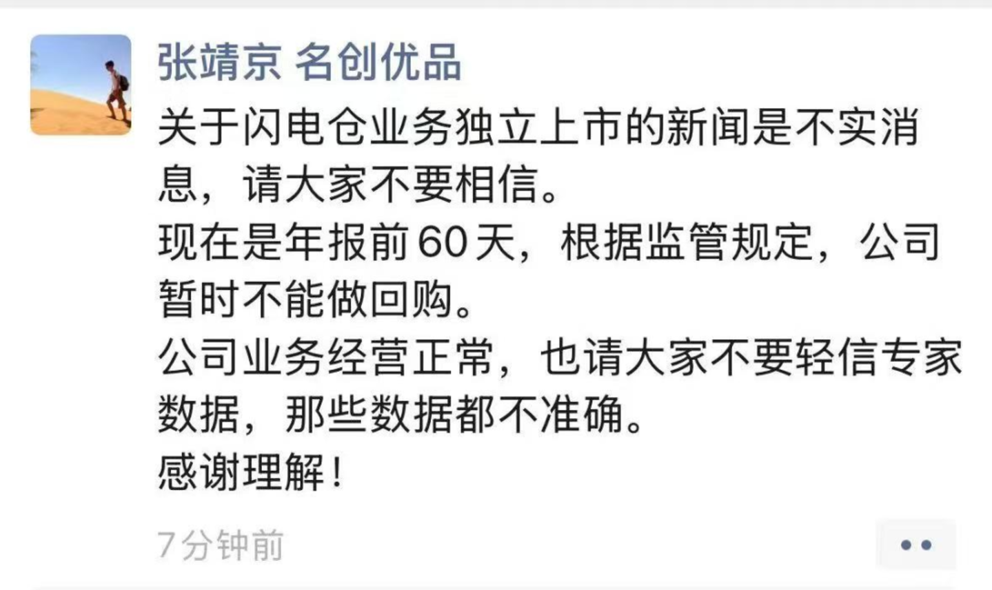 尽管名创优品首席财务官已经在朋友圈辟谣闪电仓拆分上市的传闻,但对这一业态狂飙突进的姿态已引发行业关注。