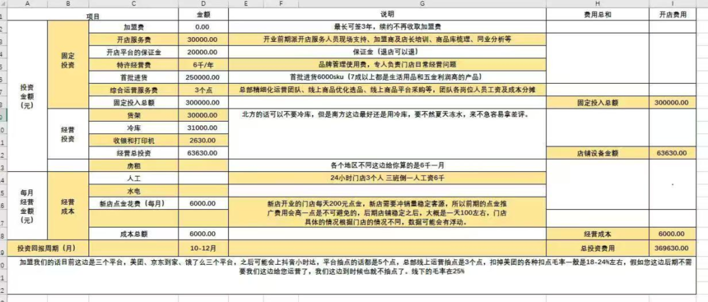 类似的是,金叶在陕西加盟惠宜选超市,租赁了位于工业园区的仓库, 150 平米月租金 5000 元,近两个月,店铺毛利达 3.5 万元,扣除房租、水电后,每月净利润约 1.5 - 2 万元。