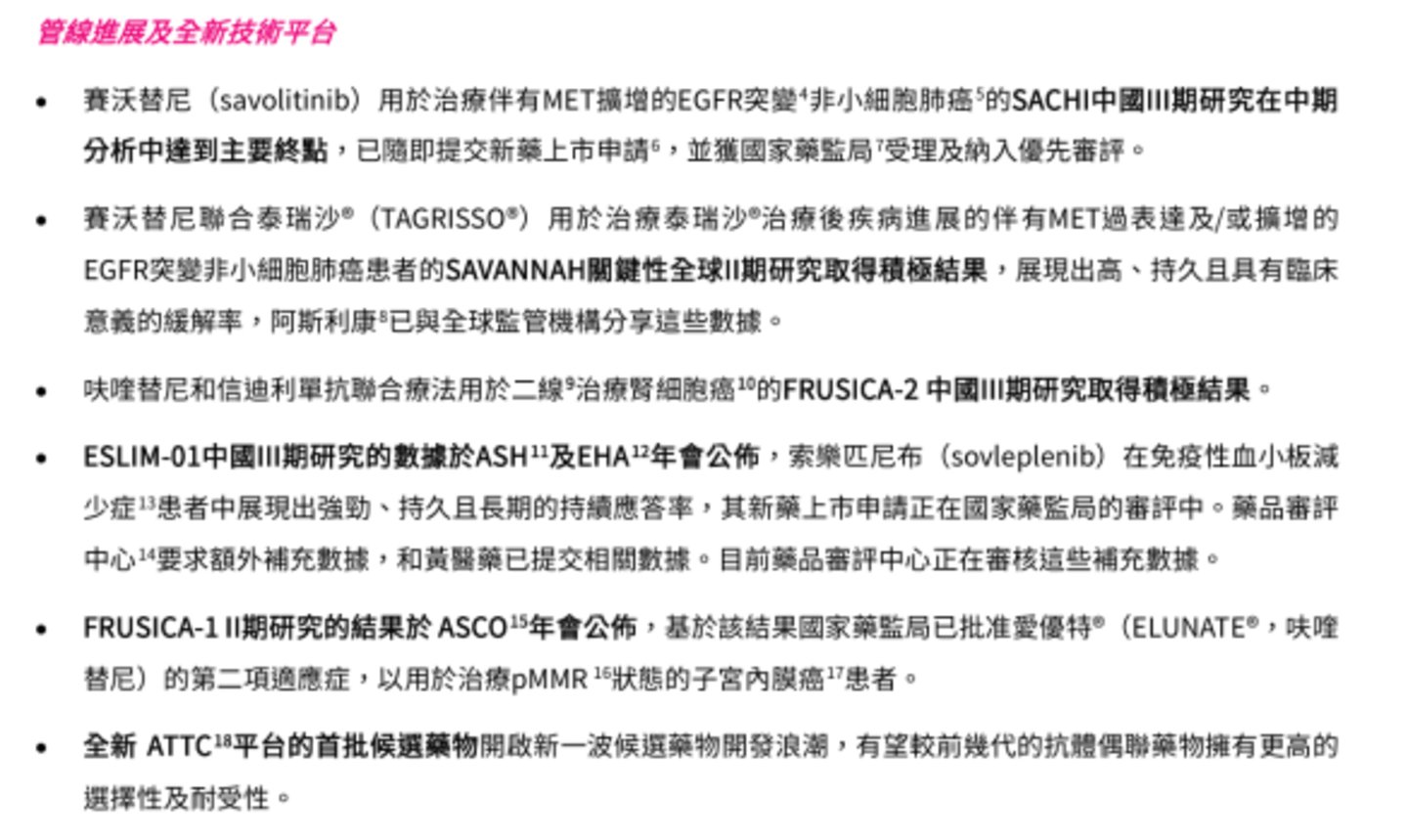 当前,和黄医药肿瘤业务的发展,主要靠呋喹替尼、索凡替尼、赛沃替尼“三大替尼”拉动。