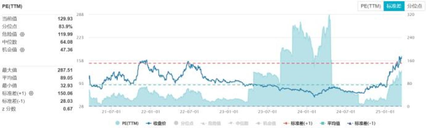 正是基于业绩困境反转以及人形机器人业务潜力,震裕科技已经出现明显估值溢价。据Wind显示,最新PE(TTM)为130倍,PE(动)为90.6倍,后者参考性更大一些,因为全年第四季度业绩大幅增长。