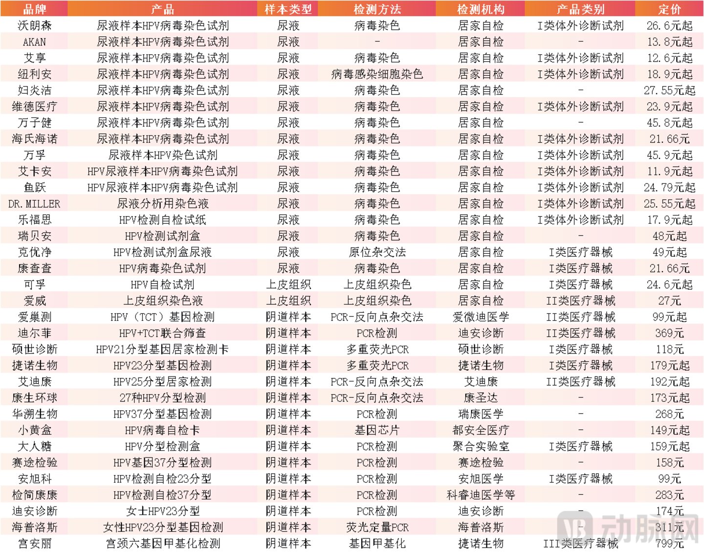 某电商平台部分销量较大的HPV自检产品 数据来源:动脉网根据公开信息整理