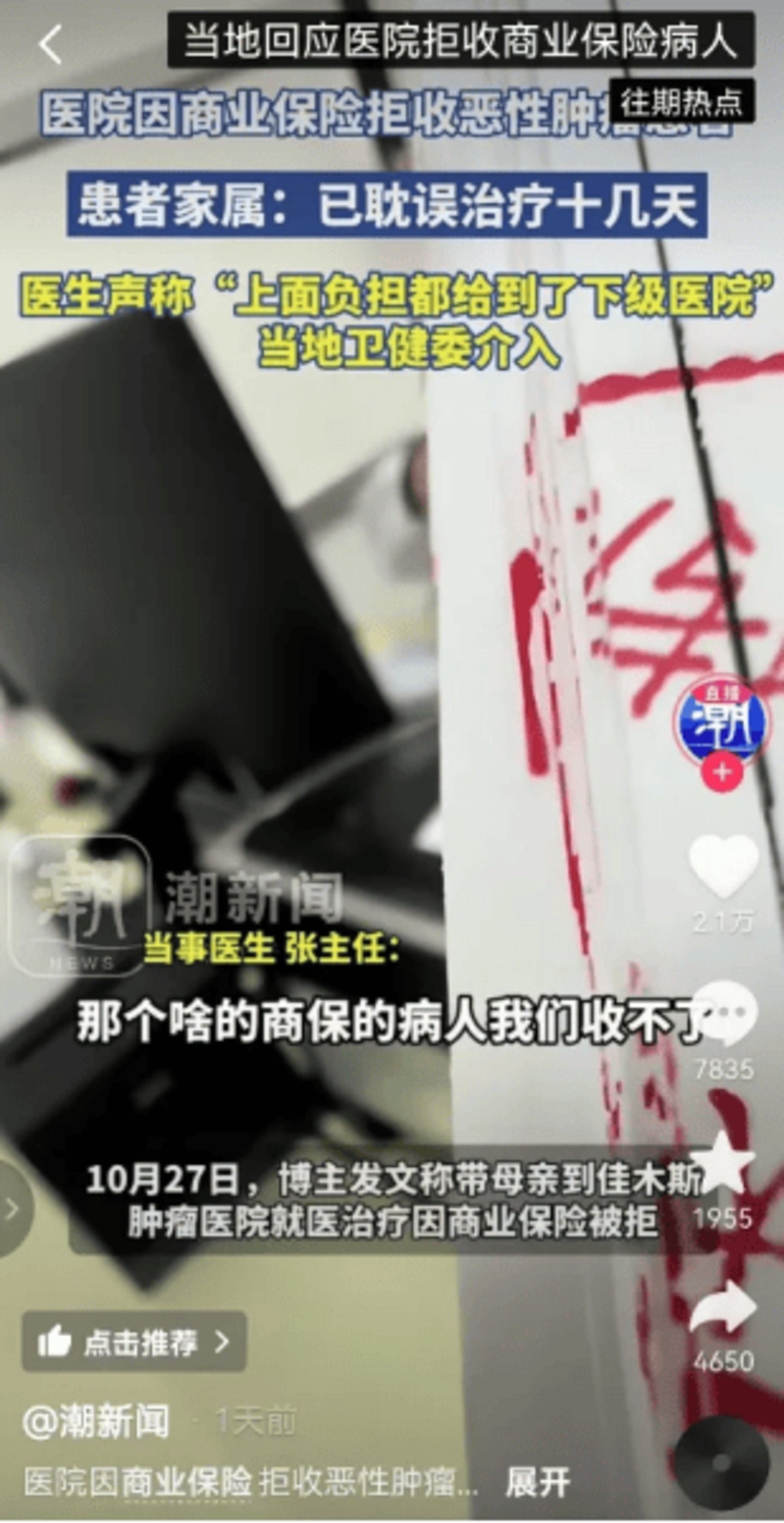 一个现实且残酷的案例是,某网友母亲因购买了商业健康险而被医院拒收,耽误十几天无法得到治疗。