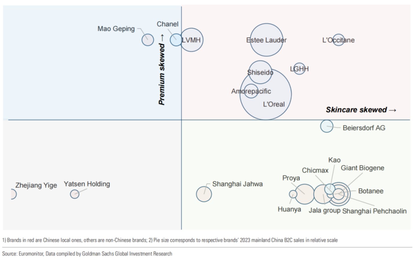 ▲中国化妆品企业图谱。皆自高盛研究报告。