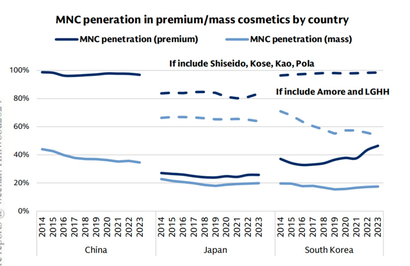 而这,恰是锻就中国高端美妆品牌的机遇。高盛在研究中表明,参照日本和韩国,从终局思考,本土品牌有望在中国高端市场占据超50%的市场份额。