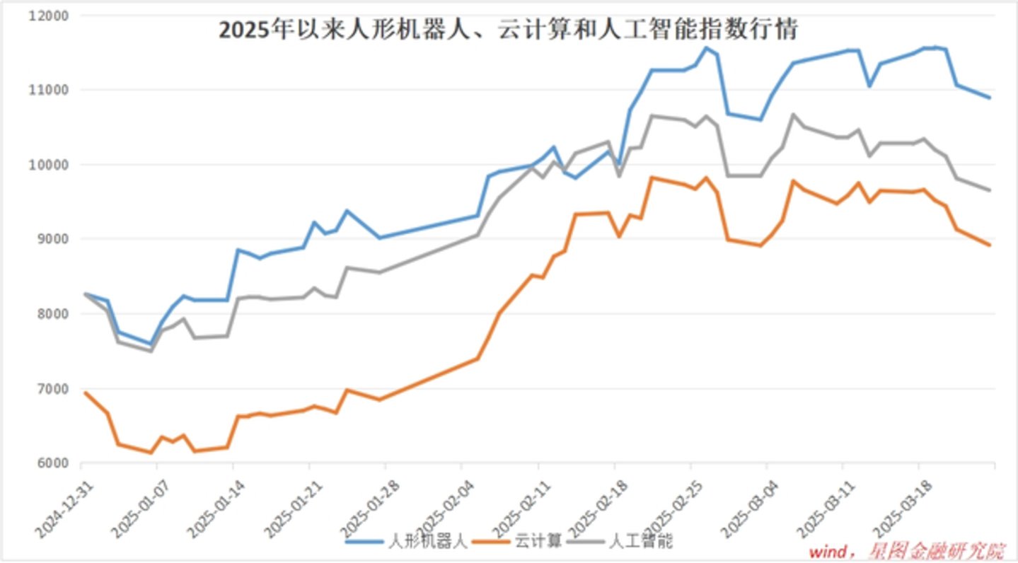 本轮科技牛行情呈现典型的结构式轮动特征,以DeepSeek现象级破圈为起点,AI应用、算力、云计算三大主赛道轮番领涨,后续人形机器人板块接棒爆发,形成科技成长风格的强势上行通道。