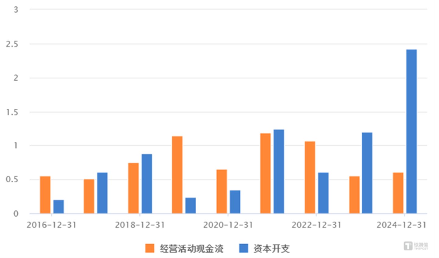 需要注意的是,公司利润承压亦源自其成本增长,尤其资本开支翻倍,2024年购建固定资产、无形资产和其他长期资产支付的现金达到2.42亿元,为2023年的两倍,主要为2020年的IPO募投项目研发中心军民两用火箭生产能力建设项目,2024年形成1.1亿元在建工程。