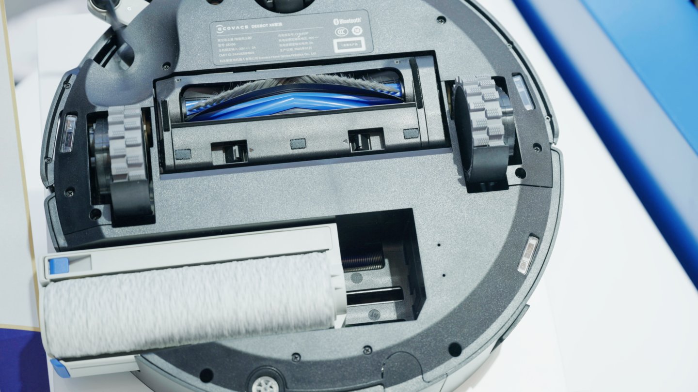 科沃斯在X9 Pro上搭载了一套整机三抬升结构,即边刷、滚刷、滚刷都能根据需求进行抬升,比如当遇到大颗粒物时,机器人的边刷能够自动执行抬升动作,巧妙地避免了将这些颗粒物打飞,利用清洁面更大且伴有吸力的滚刷来清洁大颗粒物,面对液体时,也能及时进行调整,让清洁效率更高的拖地结构参与到清洁当中。