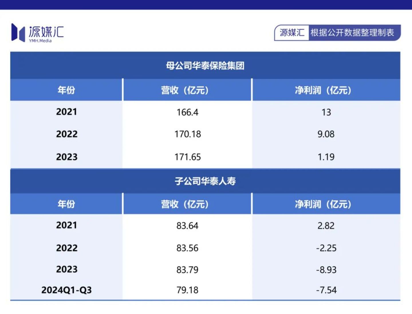 值得一提的是,华泰保险近年来营收稳定,但净利润却逐年下滑。而问题就出在旗下的另一核心子公司华泰人寿身上。2021-2023年,华泰人寿的净利润由盈转亏,是拖累母公司利润下滑的主要原因。而到了2024年,华泰人寿持续亏损的情况仍未好转。