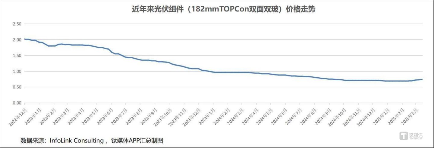 再加之此前1月17日出台的《分布式光伏发电开发建设管理办法》,规定一般工商业分布式光伏5月1日前可全额上网,5月1日后只能全部自发自用或自发自用余电上网,大型工商业分布式光伏只能全部自发自用。下游为抢差价、抢项目认定资格、抢上网,涌现“430”“531”抢装潮,对上游设备需求短期激增,让持续下跌了近两年的组件价格迎来上涨。市场主流的TOPCon产品,自2月19日至26日当周首次交易均价上涨以来,一个多月已涨了超过7%,分布式项目的组件价格涨约10%,上游的电池片、硅片、硅料价格也持续走高。