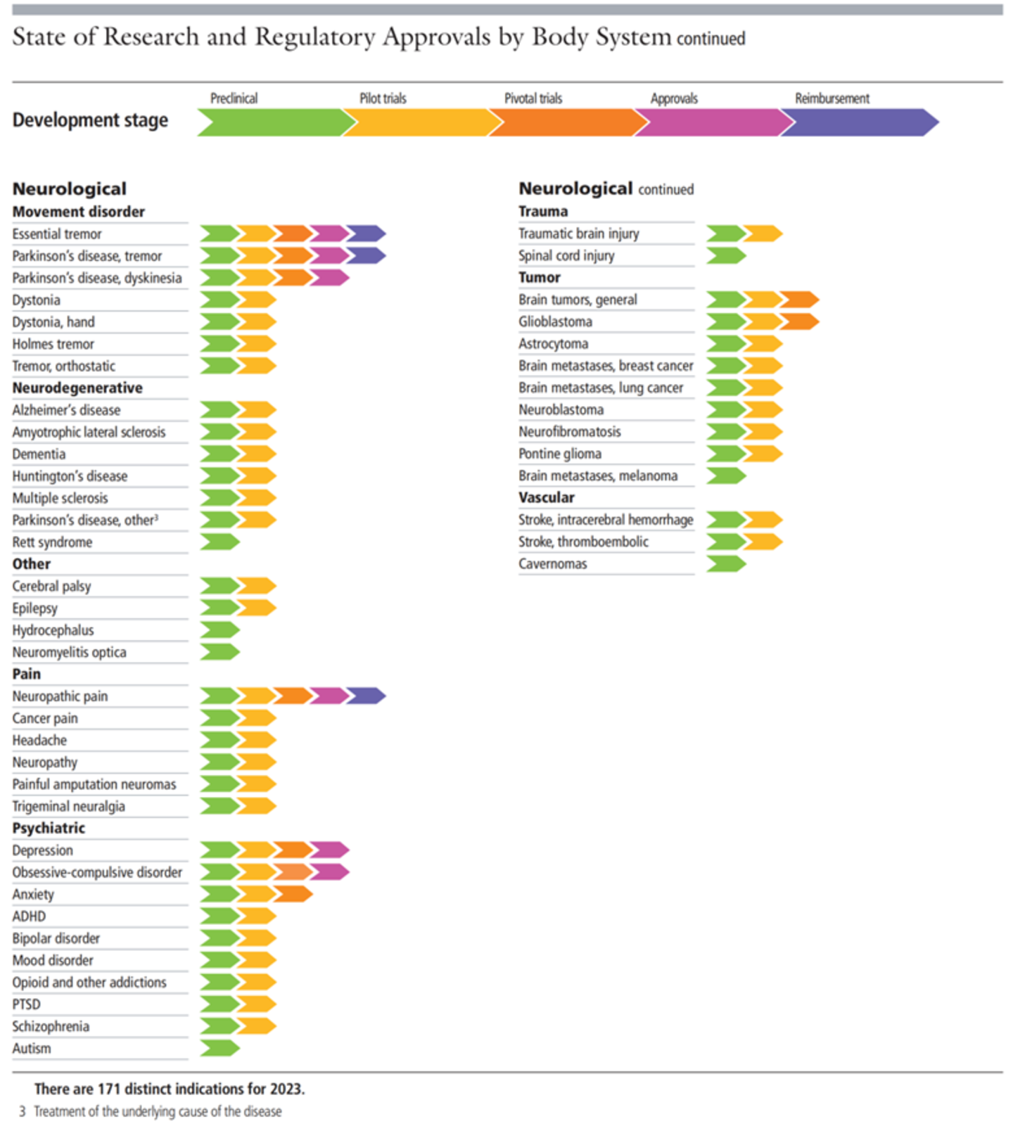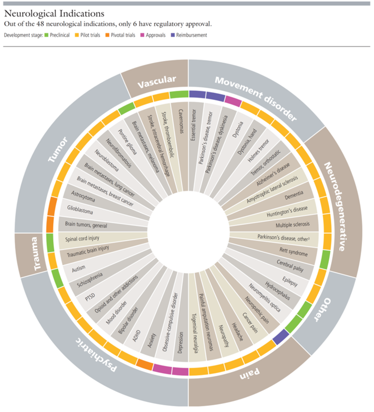 ▷2023年HIFU用于神经领域研发管线。图源:fusfoundation.org