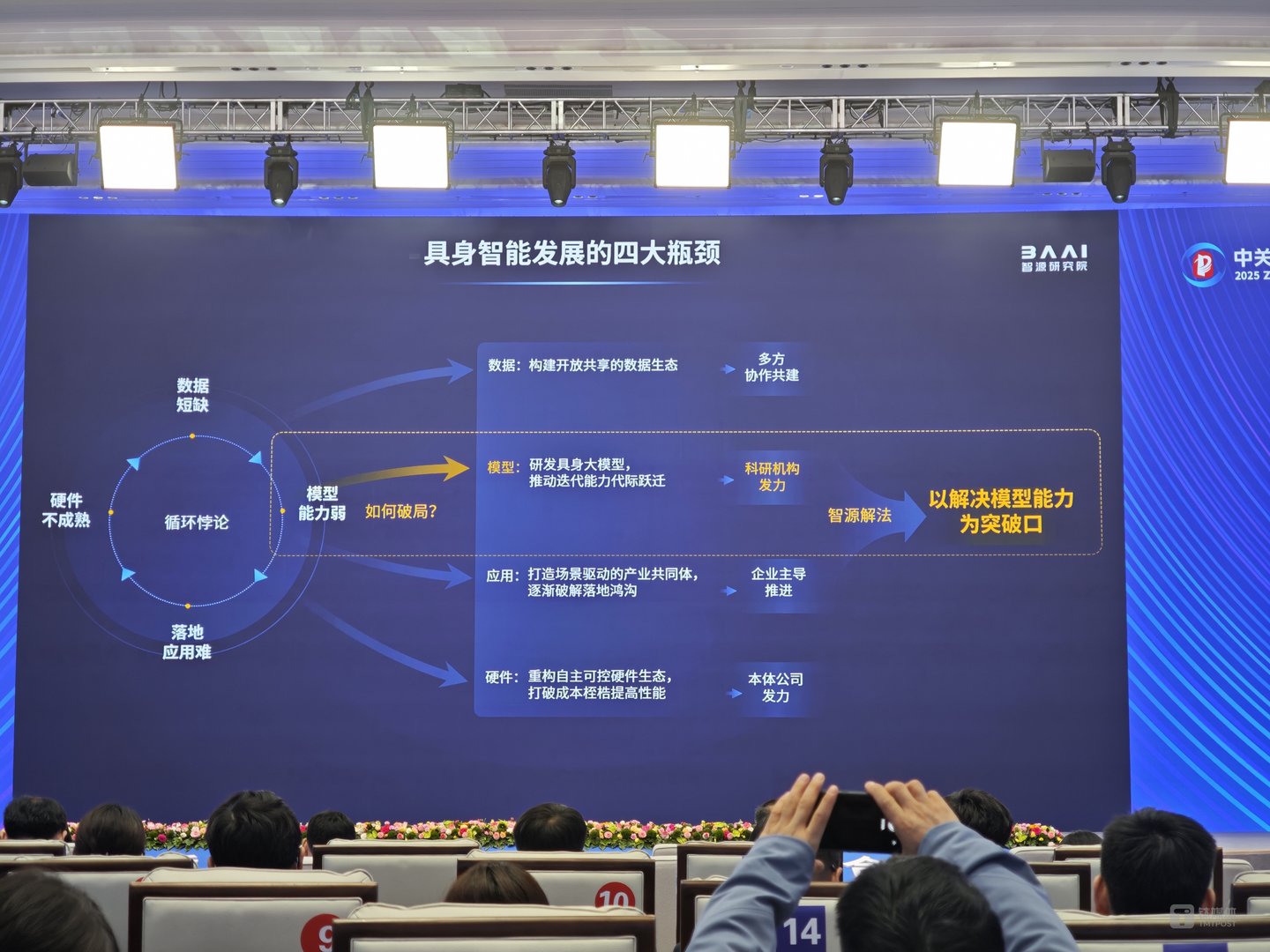 不过,当前具身智能面临四大瓶颈:数据短缺、模型能力弱、落地应用难、硬件不成熟。而智源希望以解决模型能力为突破口,通过研发具身大模型推动迭代能力代际跃迁。