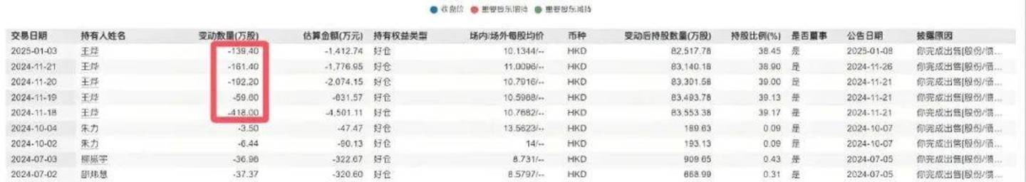 Wind数据显示,王烨在2024年至2025年1月,多次行权并卖出股票,套现约1亿港元。