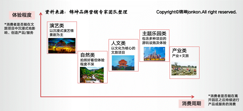 作为辅导和服务了100多家城市品牌、200多个上市公司、300多个行业第一品牌和400多个专精特新企业的全国知名的产城园企品牌服务商头牌,锦坤品牌营销专家团把目前国内的农文旅园区,可大致分为五类:产业类、人文类、演艺类、自然类和主题乐园类等五大类别。各类型的文旅内容、核心发展模式都各有不同。