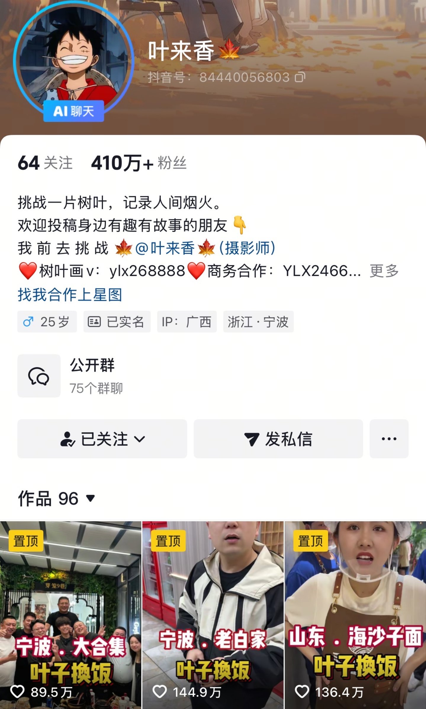 用“叶子换饭”在抖音收获四百多万粉丝的“叶来香”发现,自己正陷入创意同质化泥沼。过往视频中,他用一片片叶子精心雕琢人物画像,换取了市井生活中的酸甜苦辣咸,饭店老板与他分享人生故事,透过手机屏幕与观众们建起了真情链接。