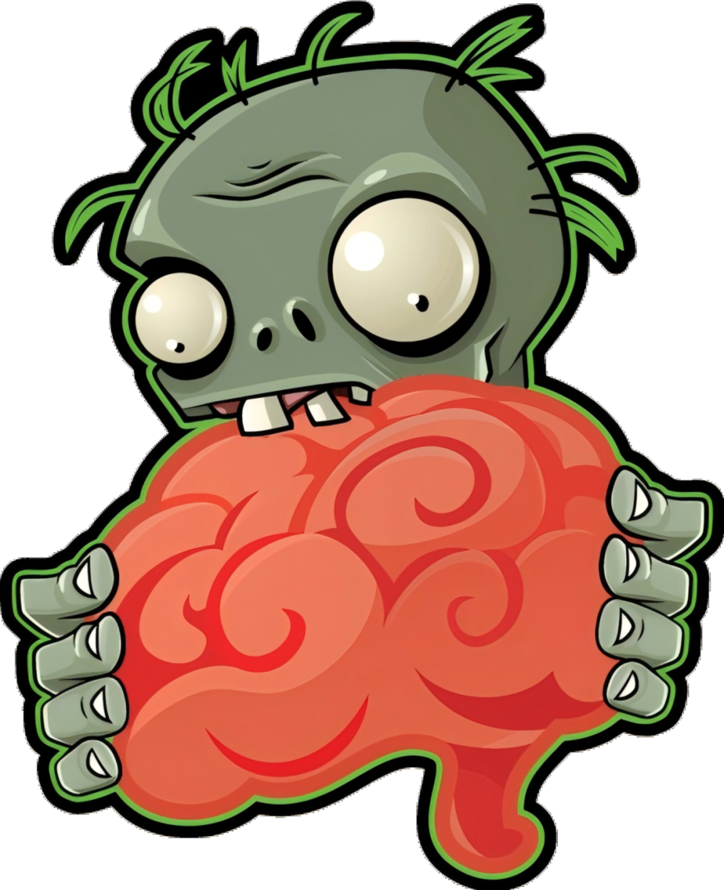 ▷在红遍全球的《植物大战僵尸》绘制的这张脑的形象中,几乎找不到任何小脑元素。“僵尸吃掉了你的脑子!等等,它好像挑食……”图源:Plants vs. Zombies Wiki
