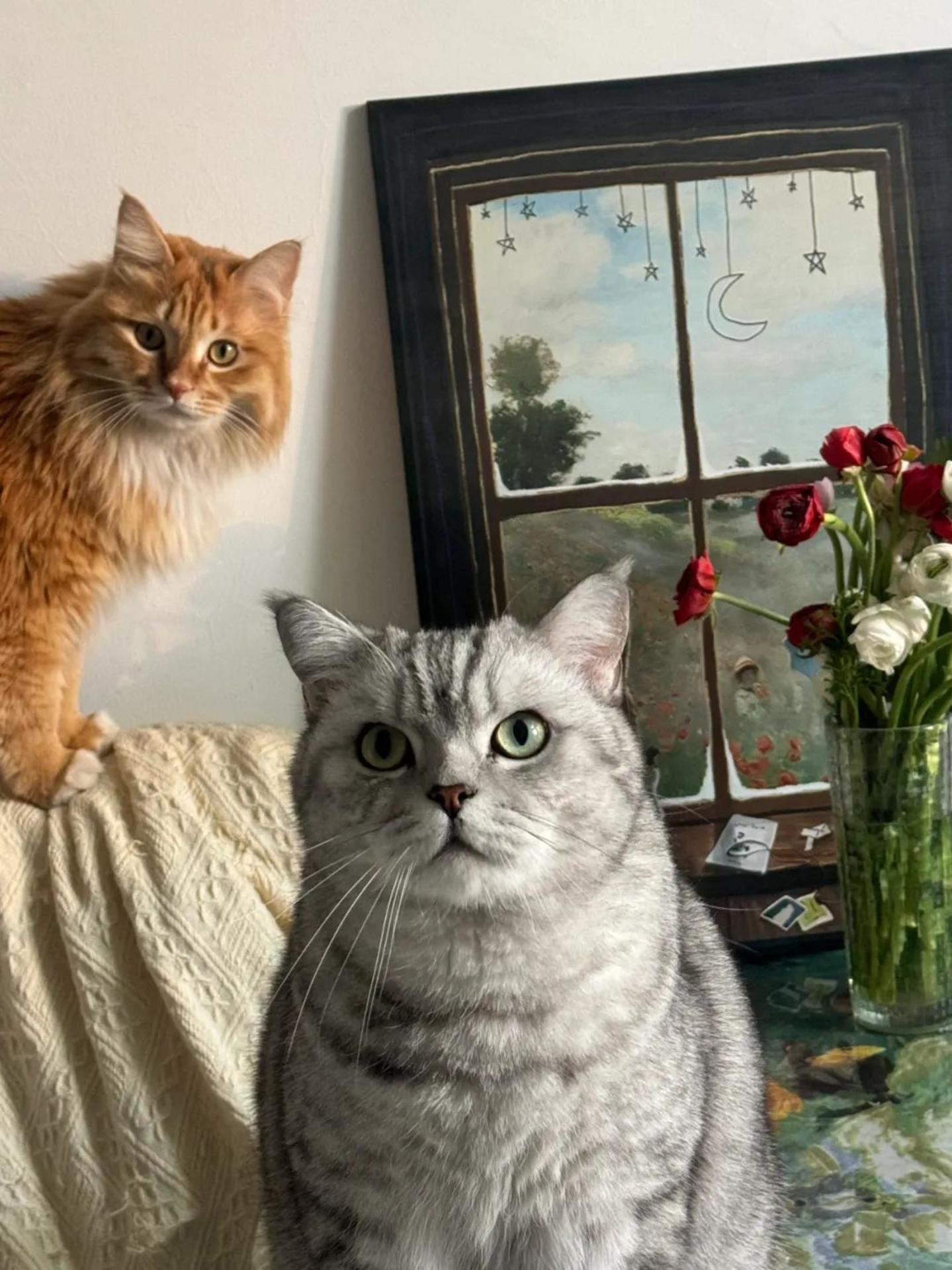 ● 杜星月自己养的两只猫。图源:受访者