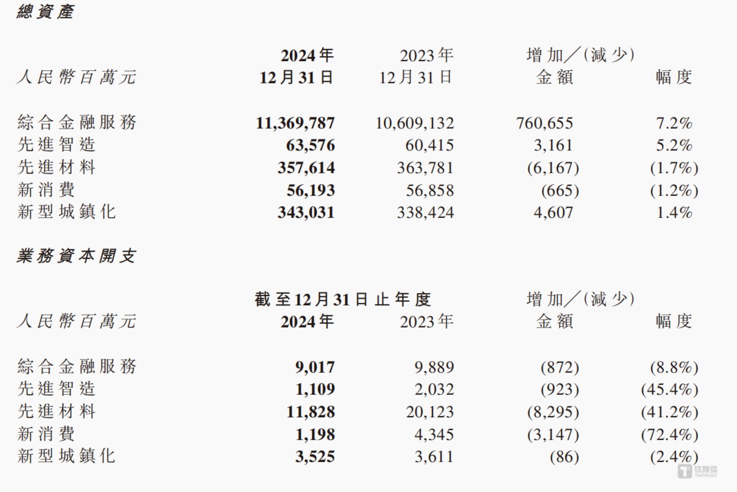 实业方面,先进智造板块增长相对稳健,先进材料板块克服大宗商品价格波动和铁矿石业务减产等因素,净利润保持百亿规模。