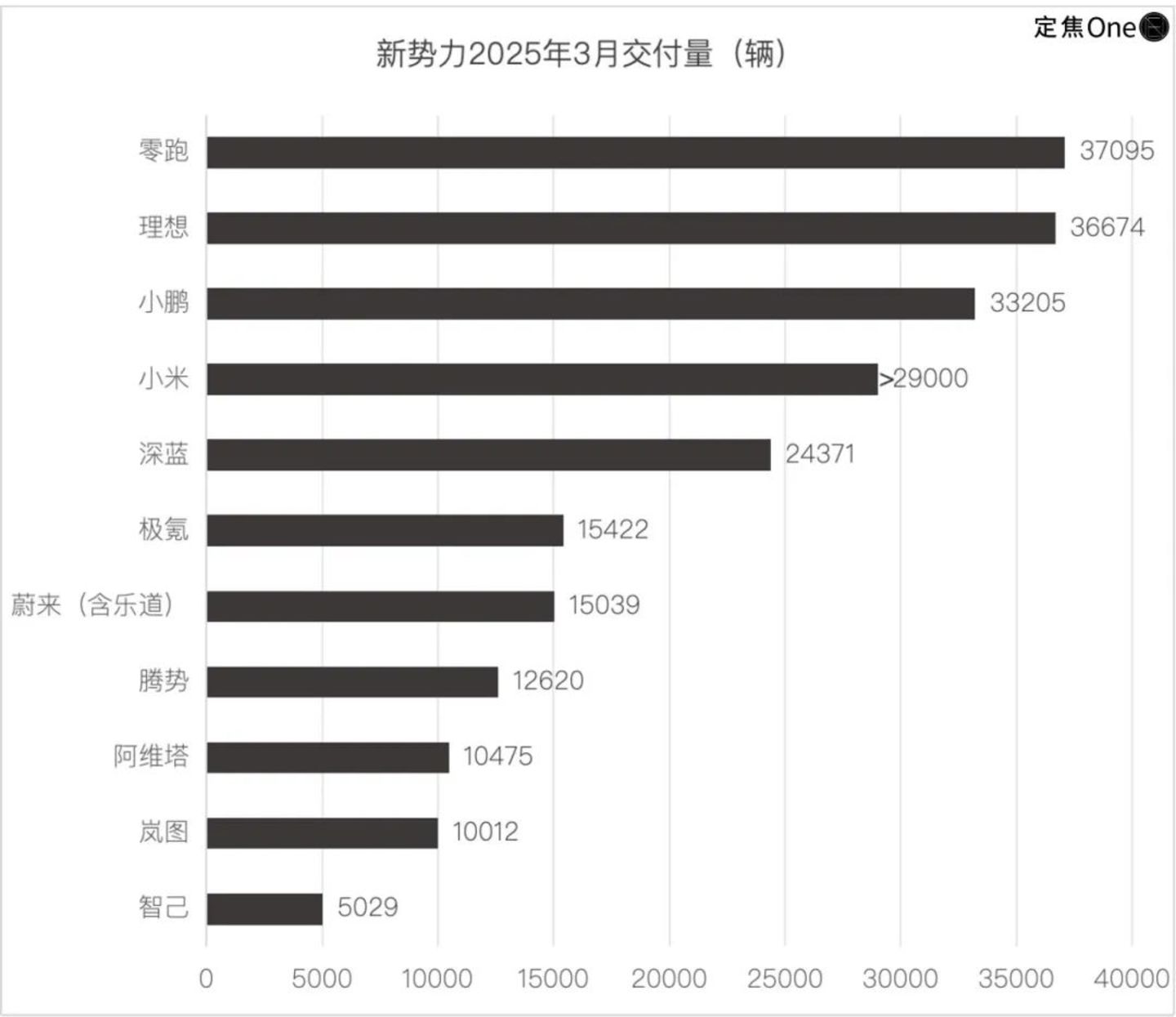 总结一季度交付榜:市场分层加剧,市场越来越集中:小鹏、理想、零跑三家交付量咬得极紧,2025年,“半步之差定局面”会是常态;第二、三梯队贴身缠斗,各家都在找自己的生存空间,争夺市场留给第二梯队不多的席位,下半年最大看点,是谁率先占稳月销2万的生死线。