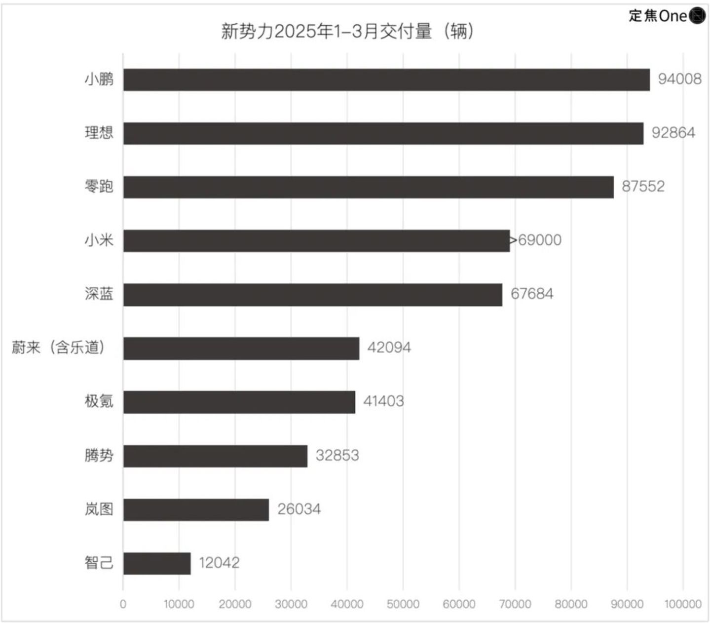 一季度交付量还透露出一个趋势:中国新能源汽车市场呈现出“低价车逆袭,中高端承压”的特点:小鹏、零跑靠性价比接连翻盘,而理想、蔚来这些曾风光无限的中高端玩家却压力山大。