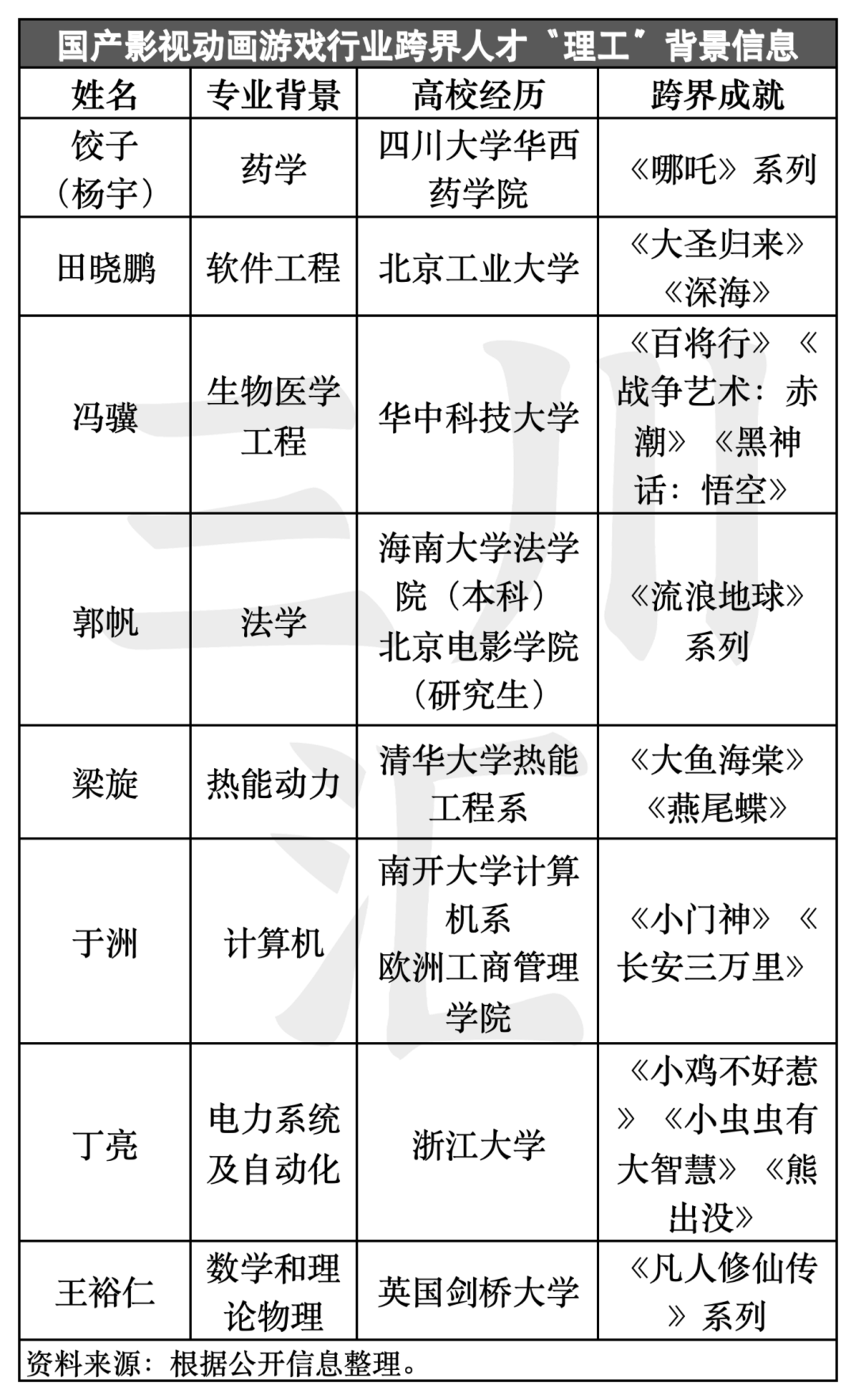 《哪吒2》突破150亿元票房的背后,是药学专业出身的饺子用实验室级的严谨打磨;《深海》缔造的视觉奇观,源自软件工程背景的田晓鹏及团队研发的粒子水墨渲染技术;《黑神话:悟空》引爆全球游戏圈,与生物医学工程出身的冯骥还原中国古建筑场景密不可分。这些非科班“理工男”的崛起,不仅改写了中国数字文化产业格局,更暴露出传统教育体系的深层危机……