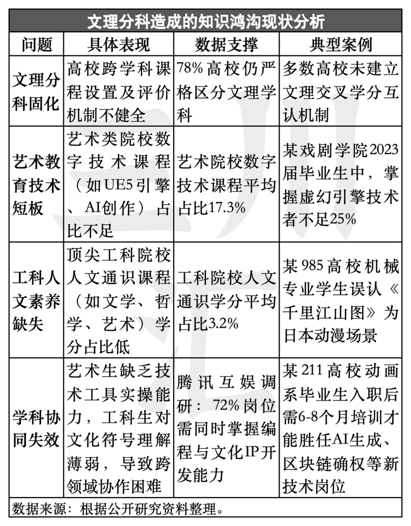 这种“外行颠覆内行”的奇观,难掩文理分科的知识鸿沟。据相关数据显示,78%高校仍维持严格的文理分科,艺术类院校数字技术课程占比不足18%,而顶尖工科院校的人文通识学分仅占3.2%。这种割裂造就了“半部论语治AI”的荒诞现实——清华北大联合调研发现,65%工科生认为文化素养无关职业发展,而艺术专业学生对UE5引擎、Houdini特效软件的掌握率不足30%。