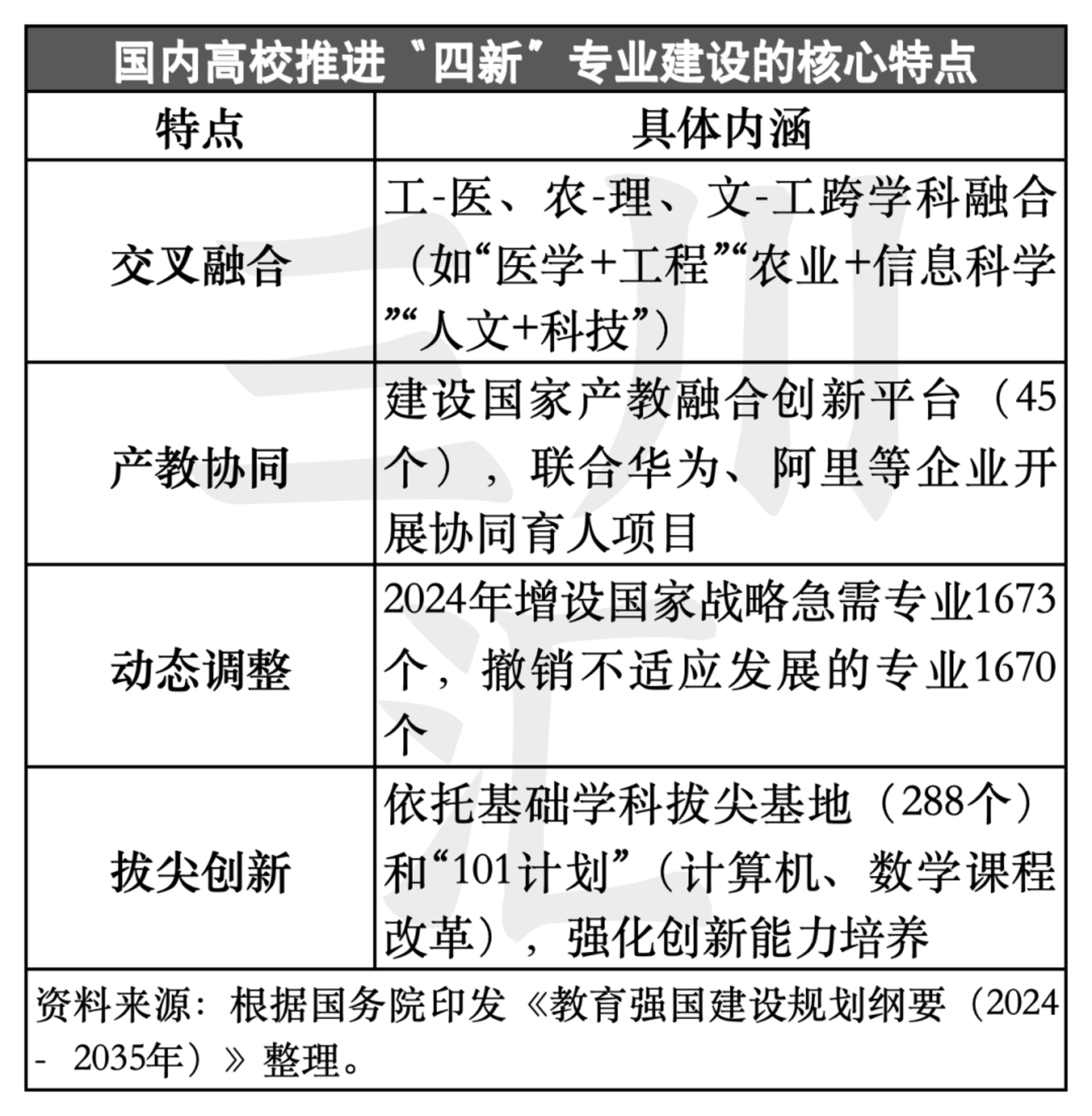 推进科技教育与人文教育协同战略,既是优化专业学科改革的必由之路,更是人才培养适应社会经济发展需求的应有之义。国务院《教育强国建设规划纲要(2024-2035年)》明确提出:深化新工科、新医科、新农科、新文科建设,其核心正是破解关键领域“卡脖子”技术瓶颈、“卡脑子”创新困境与“卡嗓子”文化失语难题,其目标直指技术突围与文化传承的双重使命。