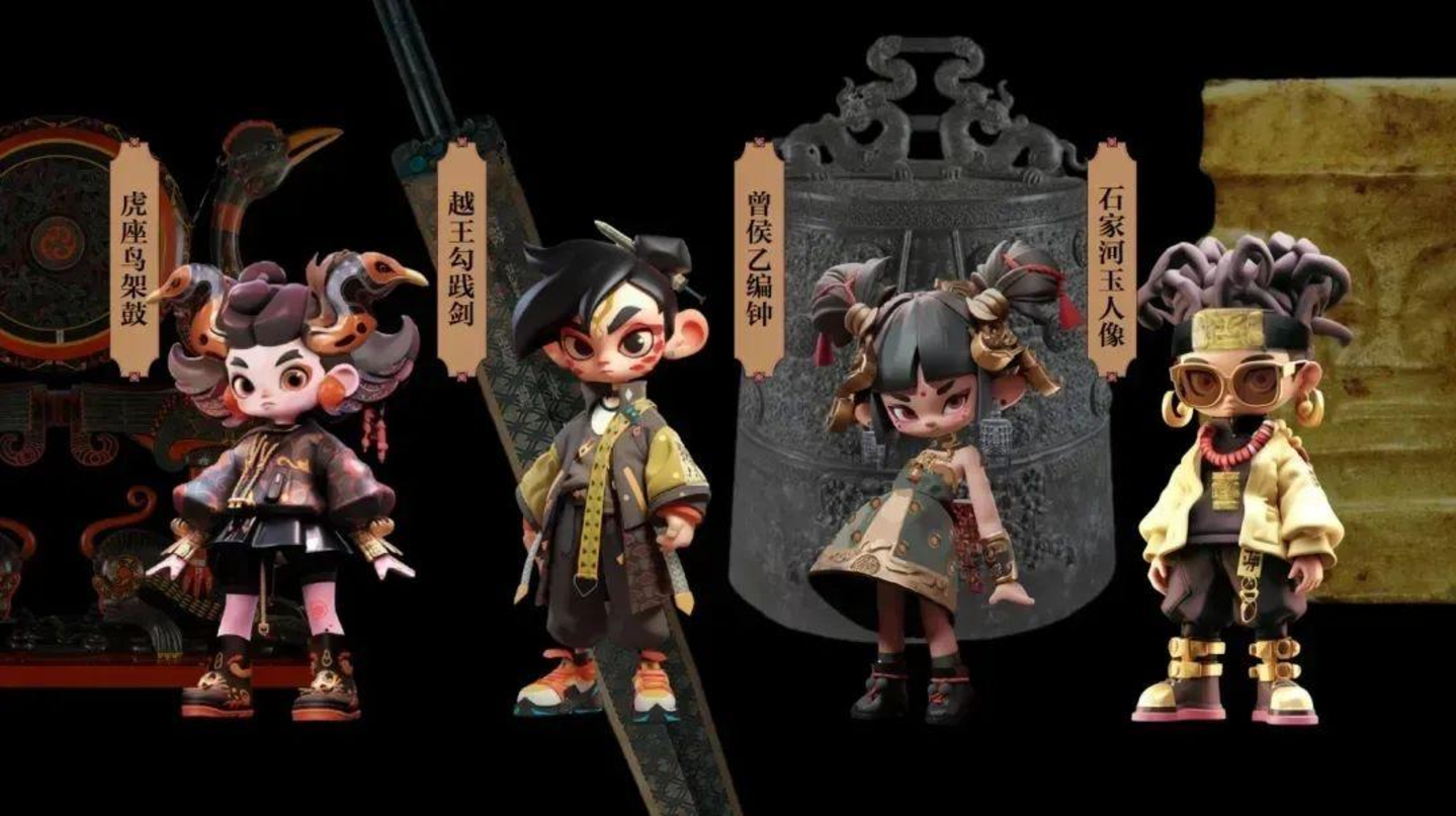 此外,由华中科技大学光影交互服务技术文化和旅游部重点实验室,依托ARTI designerXL人工智能艺术超级计算平台打造的“知音国漫乐队”,将湖北省四大镇馆文物虎座鸟架鼓、越王勾践剑、曾侯乙编钟、石家河玉人像化身为4个不同身份的乐队队员,成为全国首个人工智能技术驱动的虚拟乐队,真正让文物IP从“活”过来到“动”起来。