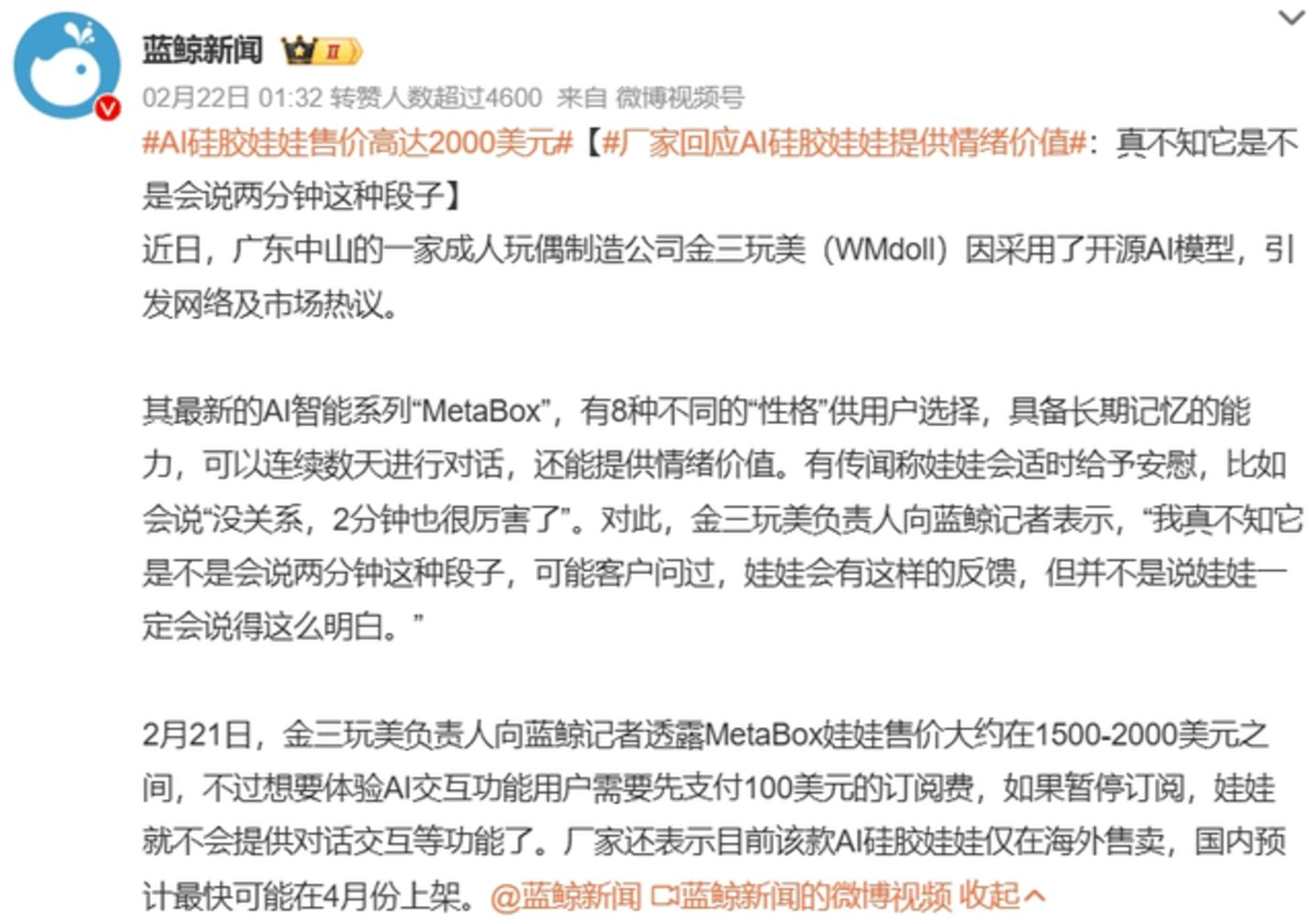 情趣娃娃叠加AI和机器人的热点,引发市场热潮,甚至带动了相关概念股的“狂飙”。接近两千亿元的成人情趣用品赛道,确实是块诱人的蛋糕。只是,AI情趣娃娃作为其中的“高阶”产品,价格昂贵,消费群体也有限。