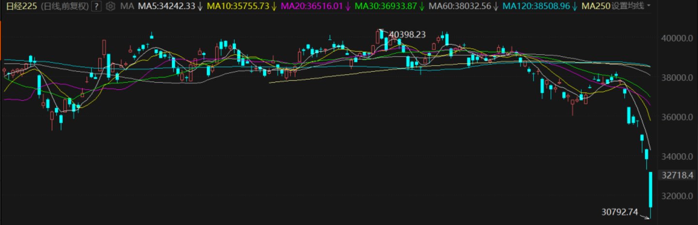 亚太市场方面,日经225指数期货、东证指数期货在触及跌停板后暂停交易。日经225指数盘中跌超8%。