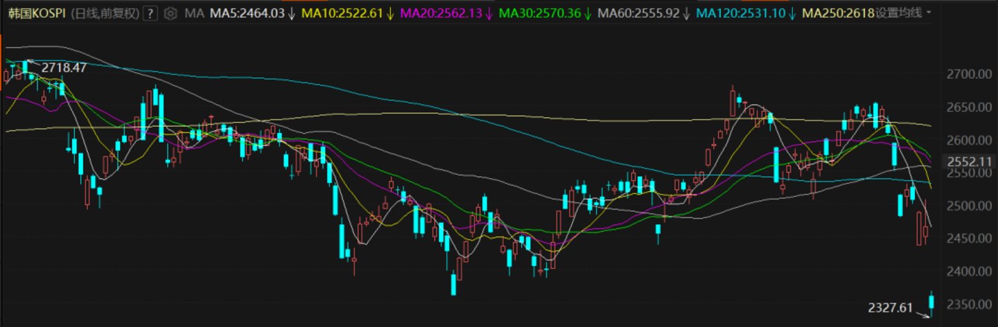 韩国综合指数盘中跌超4%,澳洲标普200指数盘中跌超6%。韩国交易所在KOSPI 200指数期货下跌5%后,启动了KOSPI的sidecar停牌机制,并暂停程序化交易5分钟。