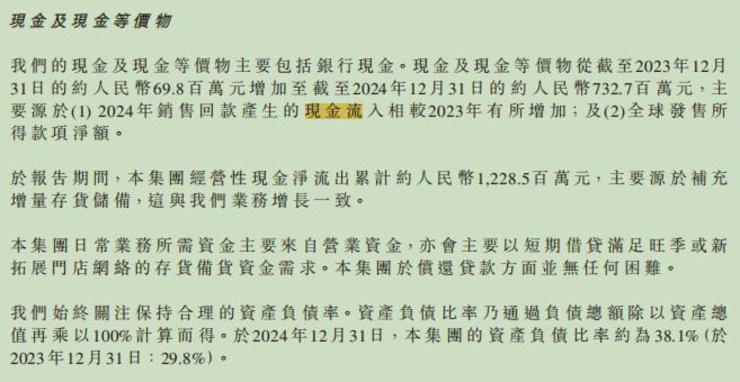 虽然近两年公司营收与利润暴涨,但老铺黄金的现金流却没能跟上。