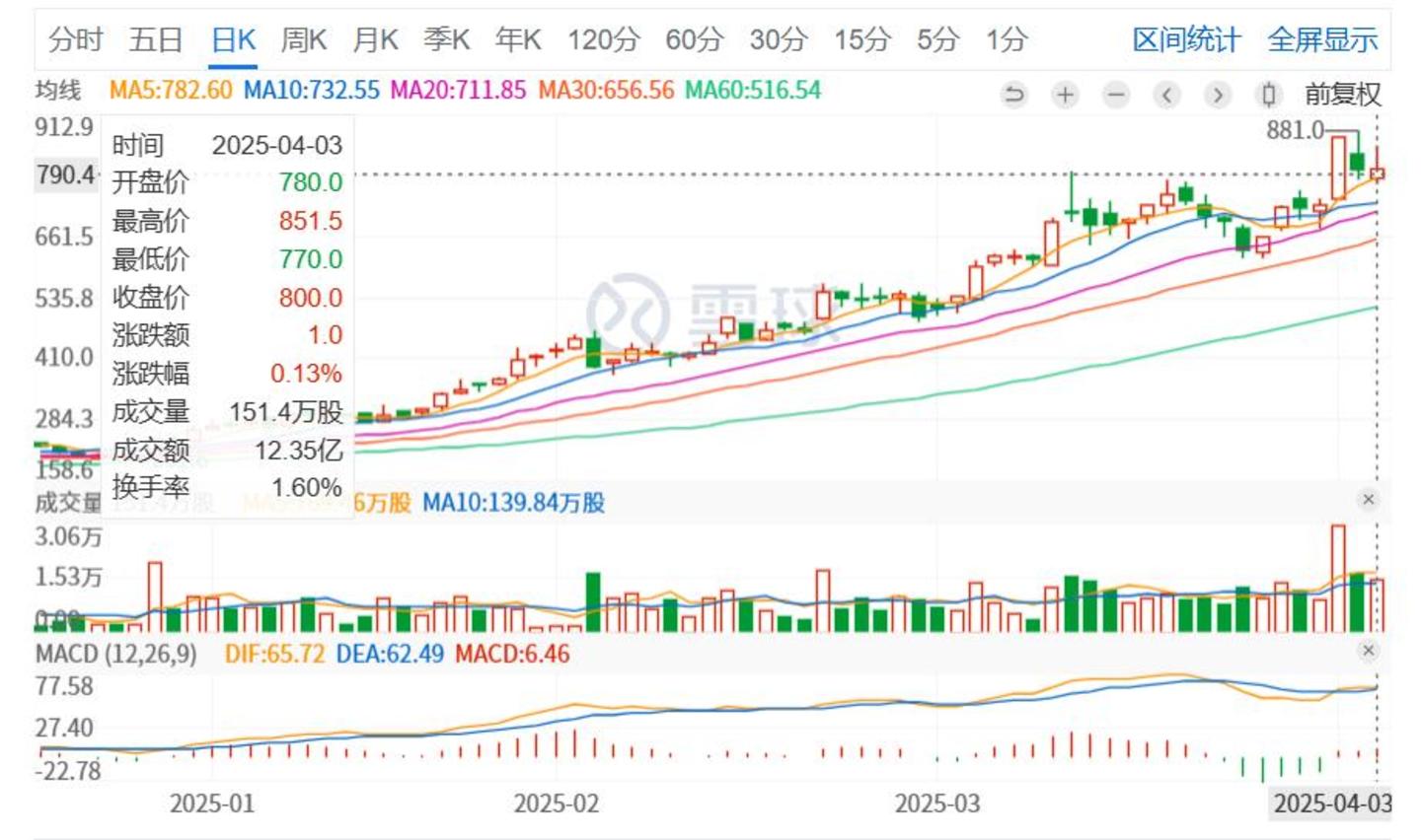 最近和金价一样波动的还有老铺黄金(6181.HK)的股价。3月31日,老铺黄金发布了上市以来的首份年报,2024年实现营收约85.1亿元,同比增长约167.5%;净利润约14.7亿元,同比增长约254%;年报公布后一天,老铺黄金又发布了“实施H股全流通授出上市批准”的公告。4月1日,老铺黄金股票大涨19.07%后,又连续两天下跌。