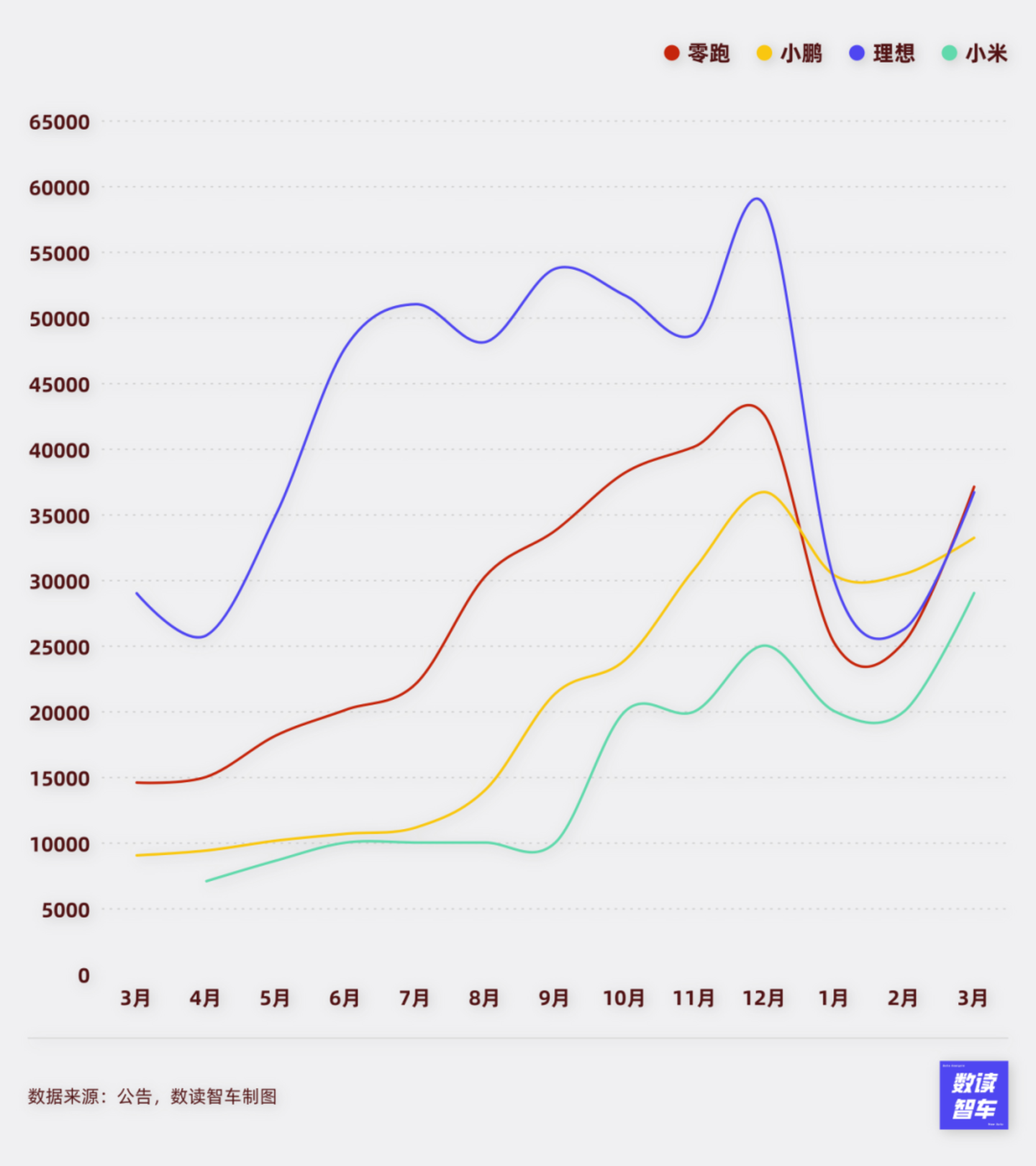 在所有新势力中,小米可能是最为特殊的存在。3月,小米明显提升了产能,其交付量超过2.9万台,已经算是第一梯队。