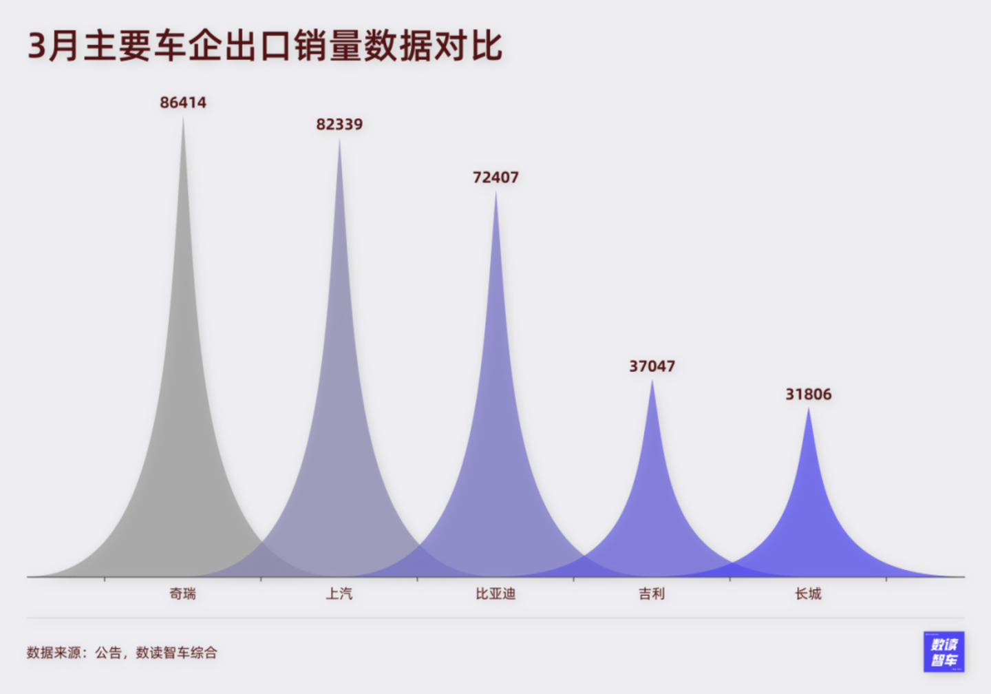 除了比亚迪,奇瑞和上汽依然是出海车企中的第一梯队。两者出口均超过了8万台。吉利和长城则是中规中矩,销量不足4万台。