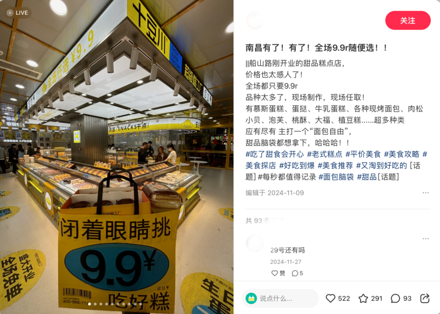 可以想象,种类丰富+低价+开在大学城附近,烘焙工厂在开店之初确实会对附近的消费者有吸引力。