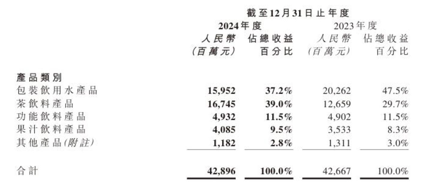 2024年财报显示,农夫山泉营收428.96亿元,同比增长仅0.5%;净利润121.23亿元,同比增加0.4%。更糟糕的是,包装水业务收入竟然罕见地下滑了超两成。这与张一鸣的76%营收增长、1900亿的财富增长形成了鲜明的对比。