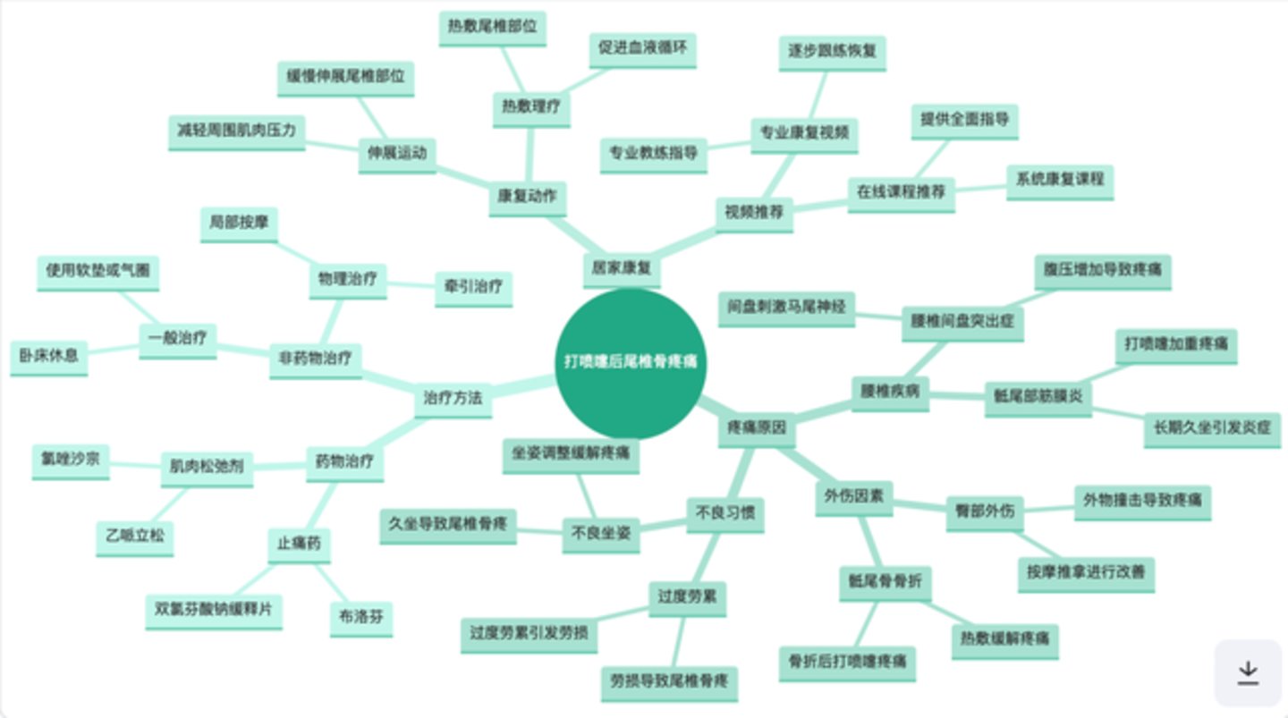 第二道题是询问夸克和百度文库“前两天打喷嚏之后出现尾椎骨疼痛的情况”,让它们分析原因并推荐相关药物和居家康复动作的跟练视频。